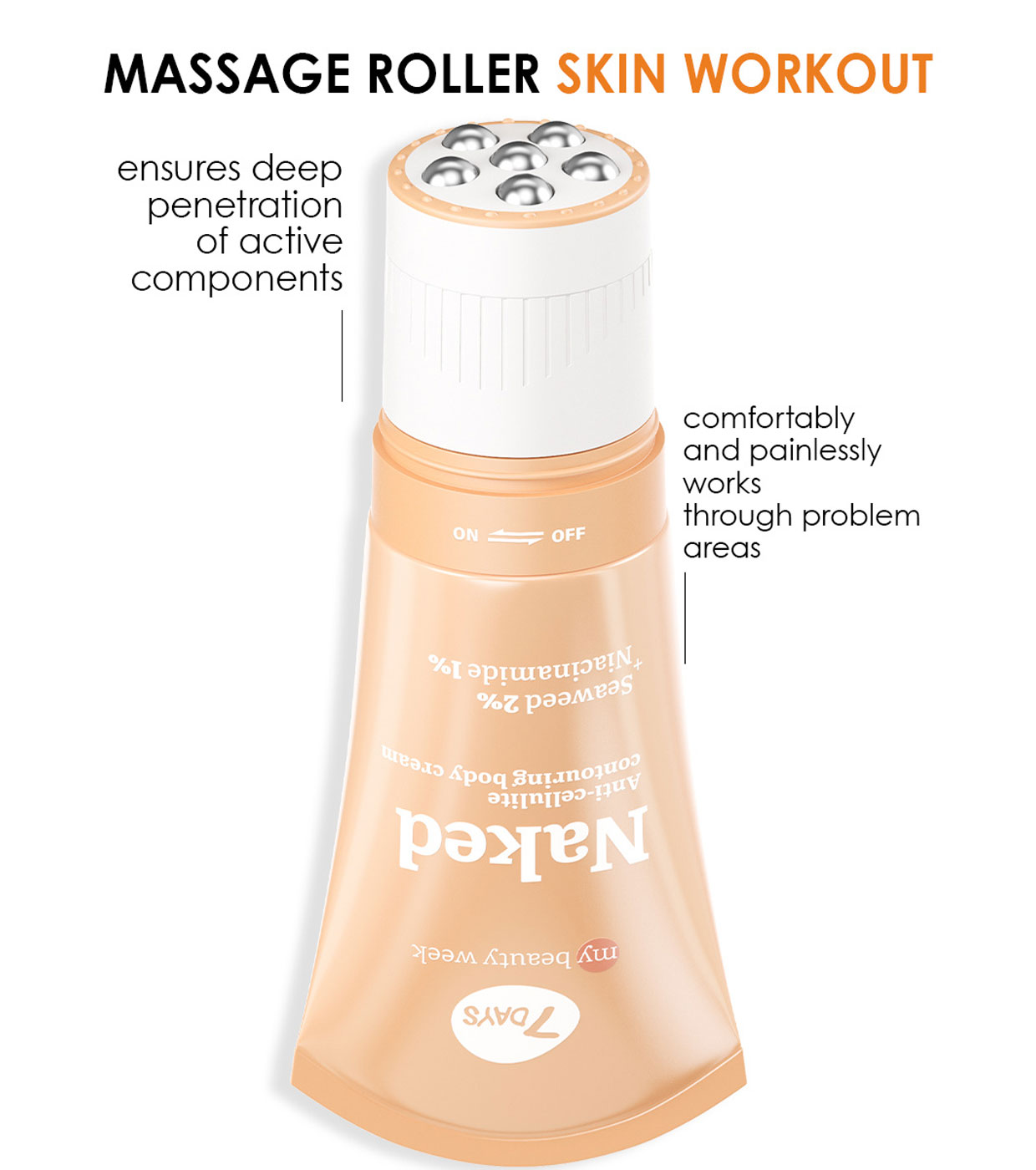 Der "SKIN WORKOUT"-Roller wirkt angenehm und schmerzfrei auf Problemzonen, verstärkt die Anti-Cellulite-Wirkung und garantiert ein tiefes Eindringen der Wirkstoffe.