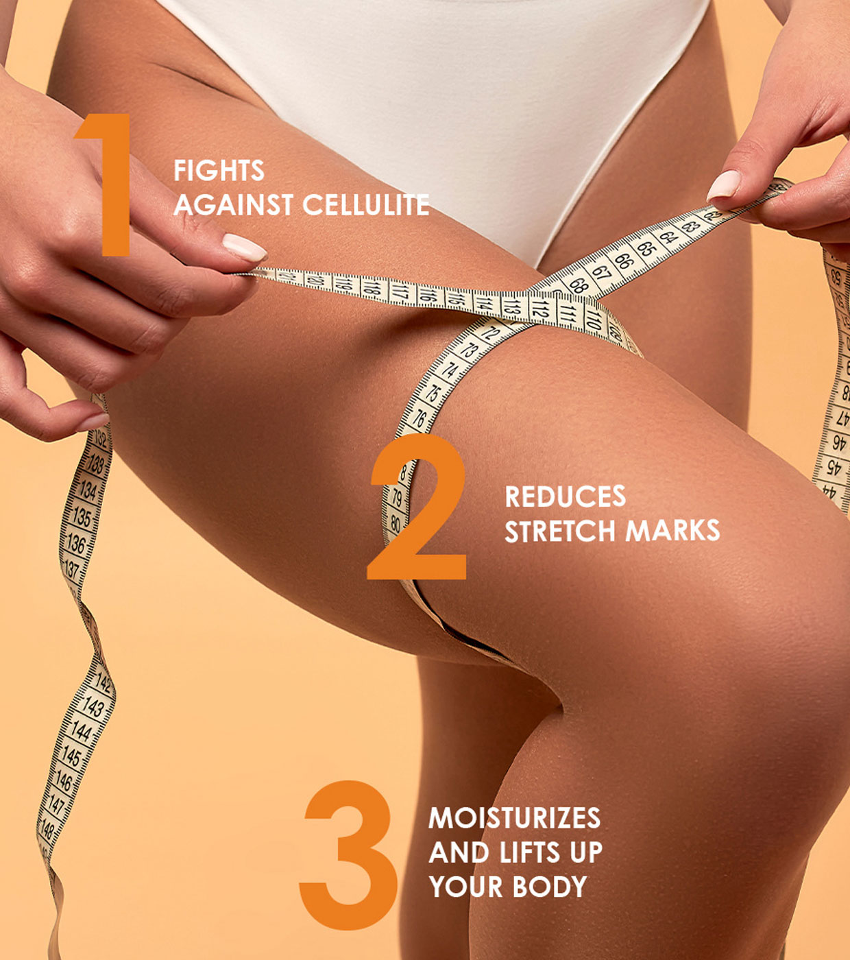 Diese Creme und der Roller wurden entwickelt, um sichtbare Cellulite-Flecken wirksam zu bekämpfen und Ihrem Körper eine klare Kontur zu verleihen.