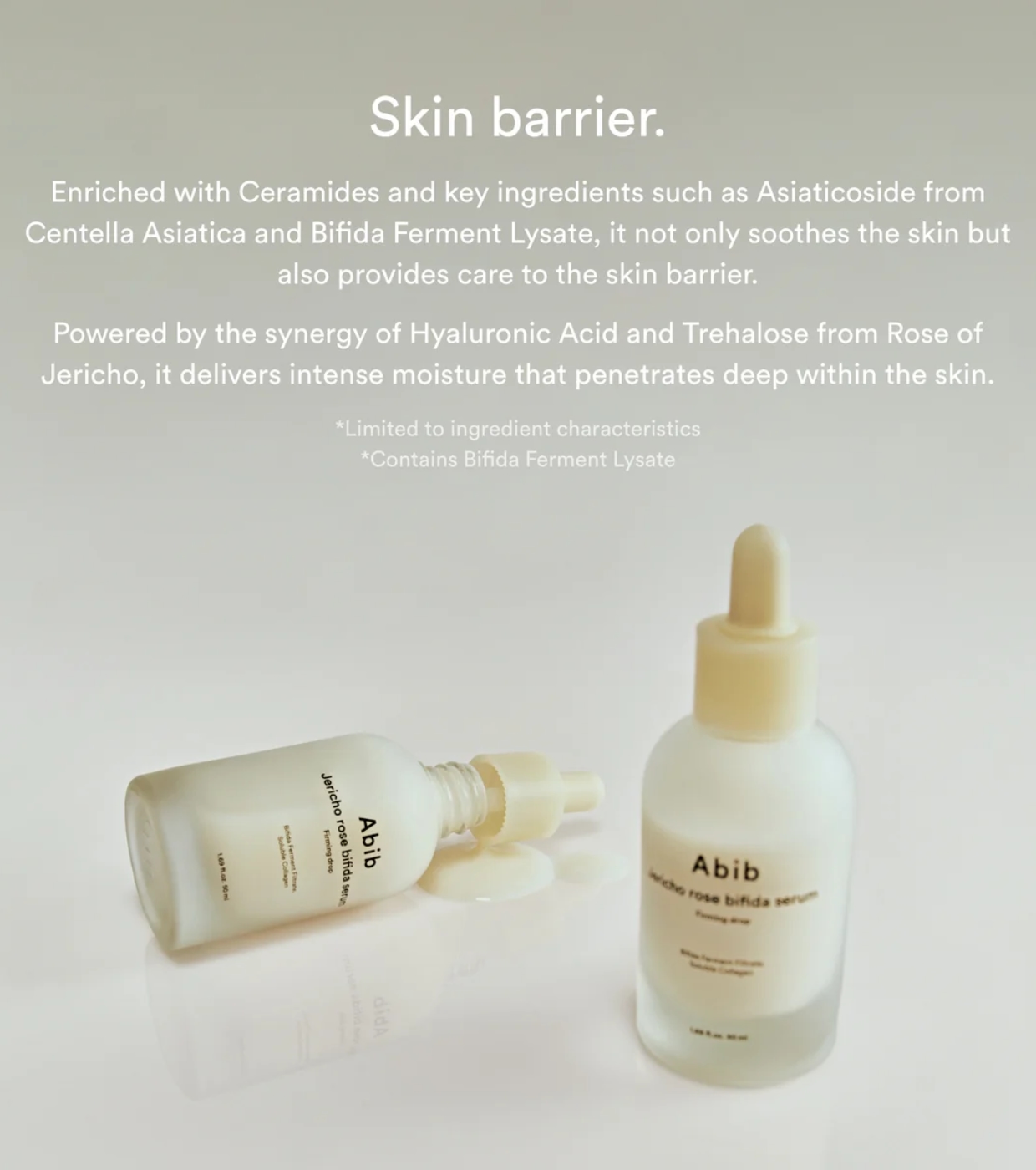 Entdecken Sie fortschrittliche Gesichtspflege mit diesem schnell einziehenden straffenden Serum Jericho Rose Bifida von Abib , das die Elastizität verbessert, das Erscheinungsbild der Poren verkleinert und die Haut intensiv mit Feuchtigkeit versorgt.