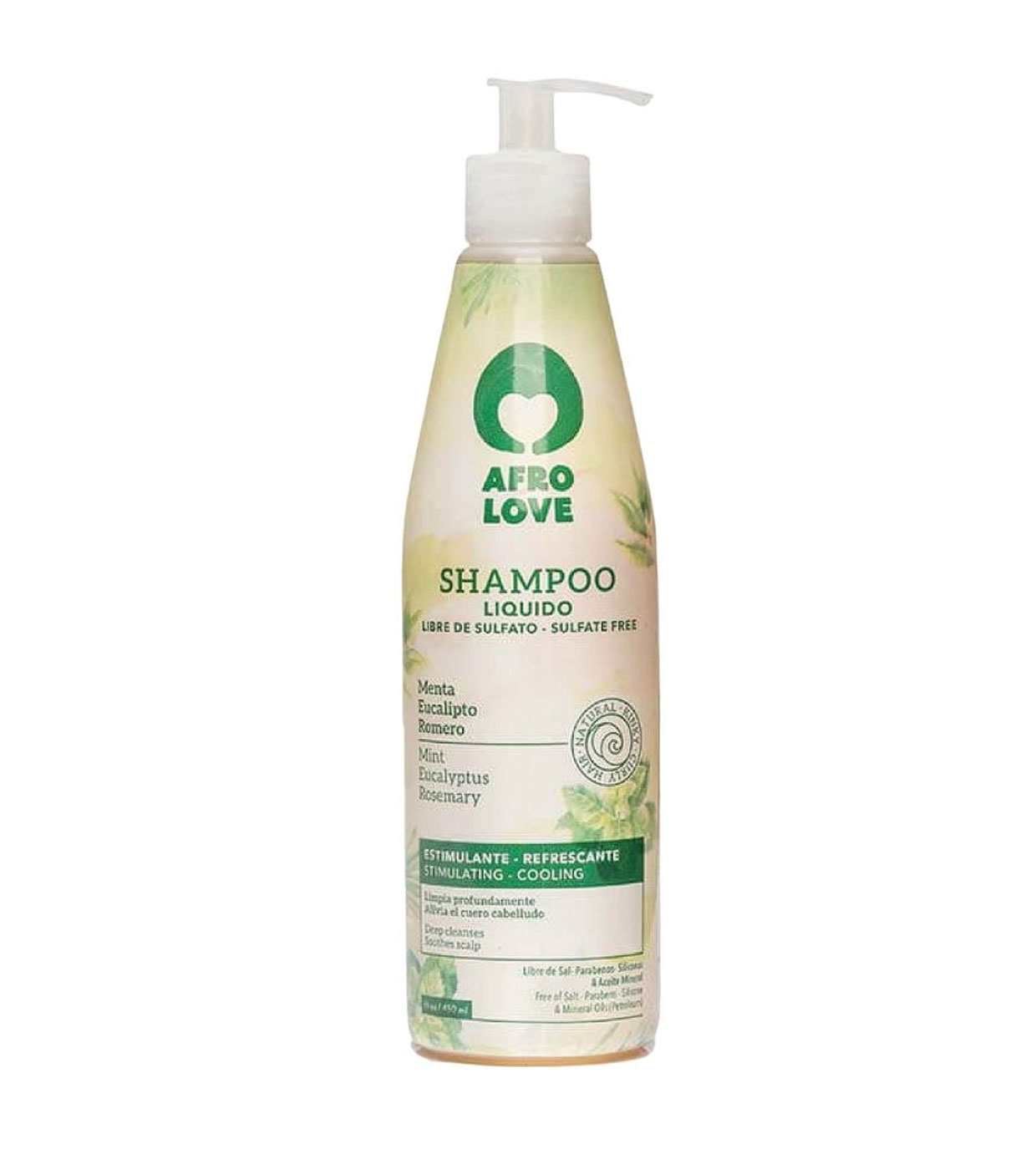 Entdecken Sie Afro Love Clarifying Shampoo , eine sulfatfreie Formel, angereichert mit Minze, Eukalyptus und Rosmarin für eine gründliche und revitalisierende Reinigung der Kopfhaut.
