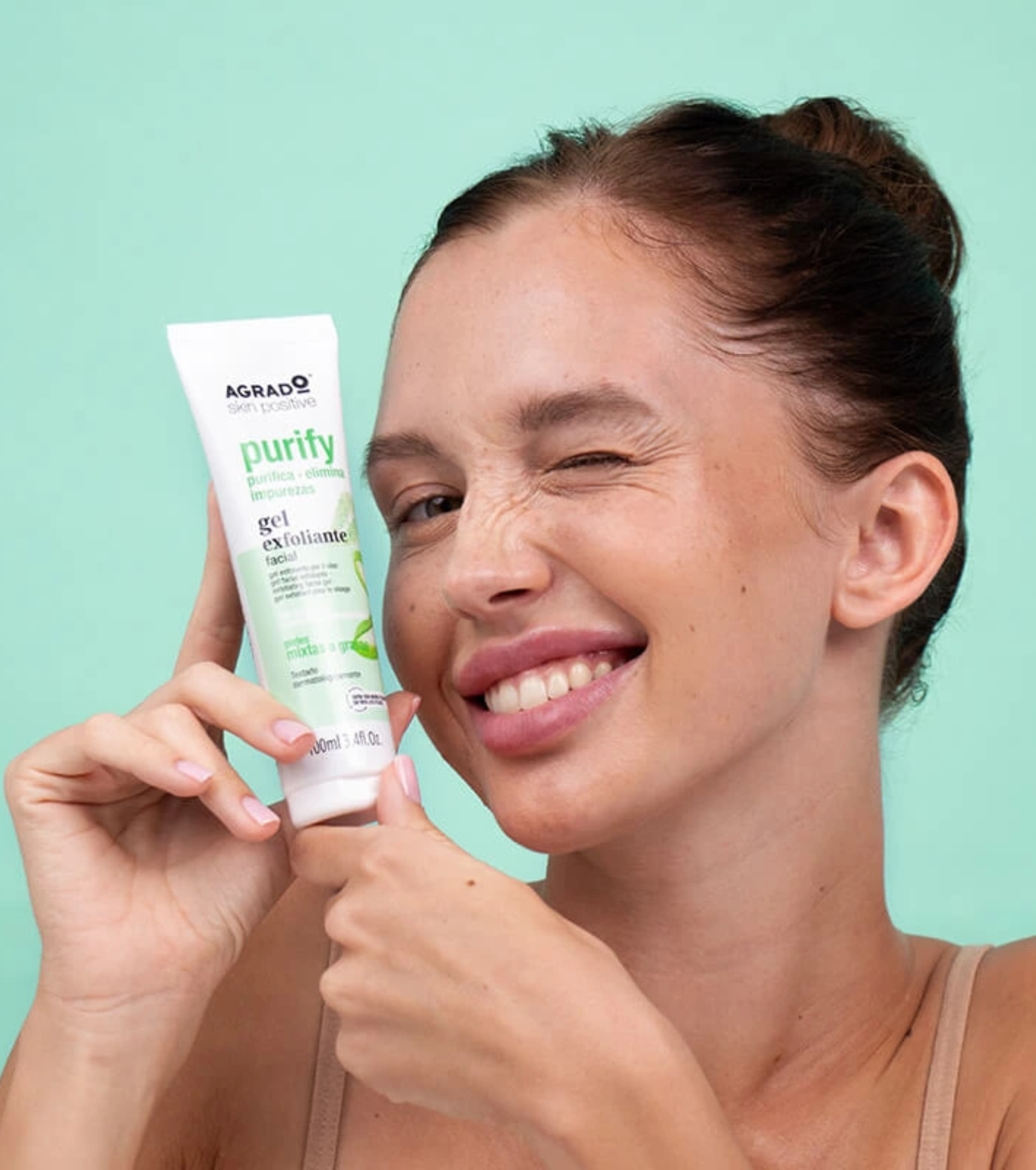 Holen Sie sich saubere, frische und matte Haut mit dem Purify Facial Exfoliating Gel von Agrado. .