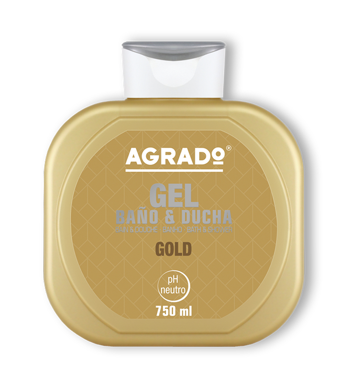 Goldenes Bade- und Duschgel von Agrado Cosmetics mit einem intensiven und attraktiven Duft, der Ihre Duschen und Bäder zu Ihrem goldenen Moment macht.
