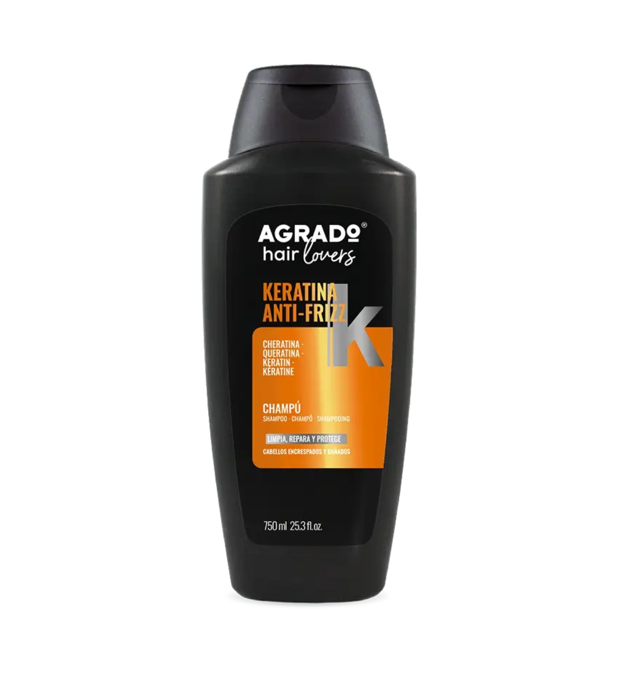 Professionelles Keratin Shampoo Agrado Cosmetic ist für krauses Haar geeignet.