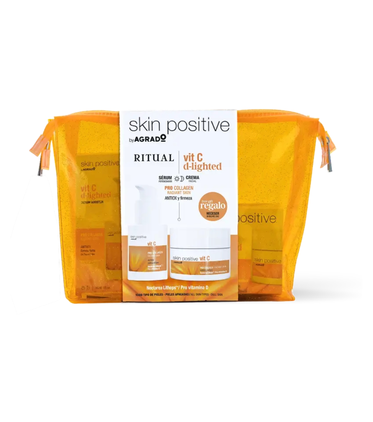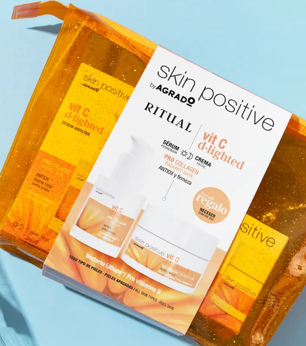 Das Ritual Skin Positive Vit C D-Lighted von Agrado umfasst das Vit C D-Lighted Facial Serum und die Vit C D-Lighted Facial Cream, eine Kombination, die entwickelt wurde, um fahle Haut zu revitalisieren und ihr Strahlkraft, Gleichmäßigkeit und Festigkeit zurückzugeben.