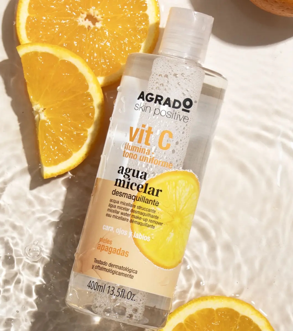 Reinigen, entfernen Sie Make-up und pflegen Sie Ihre Haut mit Agrado. Vitamin C Micellar Cleansing Water.