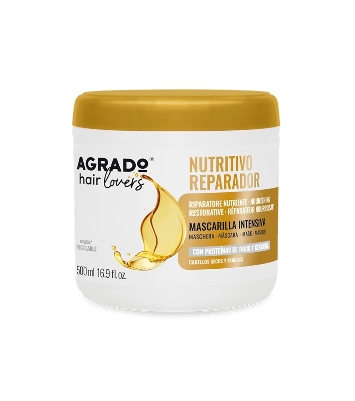 Die pflegende Haarmaske für trockenes und sprödes Haar von Agrado Cosmetic trifft Drei Funktionen in einem Produkt: macht weich, nährt und repariert.