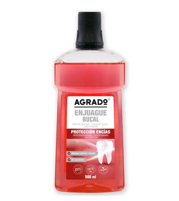 Die Zahnfleischschutz-Mundspülung schützt Zahnfleisch und Zähne und beugt Mundgeruch vor.
