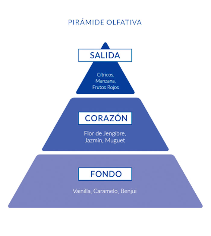 Es hat ein eau de toilette mit einem blumigen und fruchtigen Duft, in dem köstliche Düfte wie süße Himbeere und Zitrusfrüchte kombiniert werden, akzentuiert mit sanften Noten von Ingwer, Jasmin und Vanille.