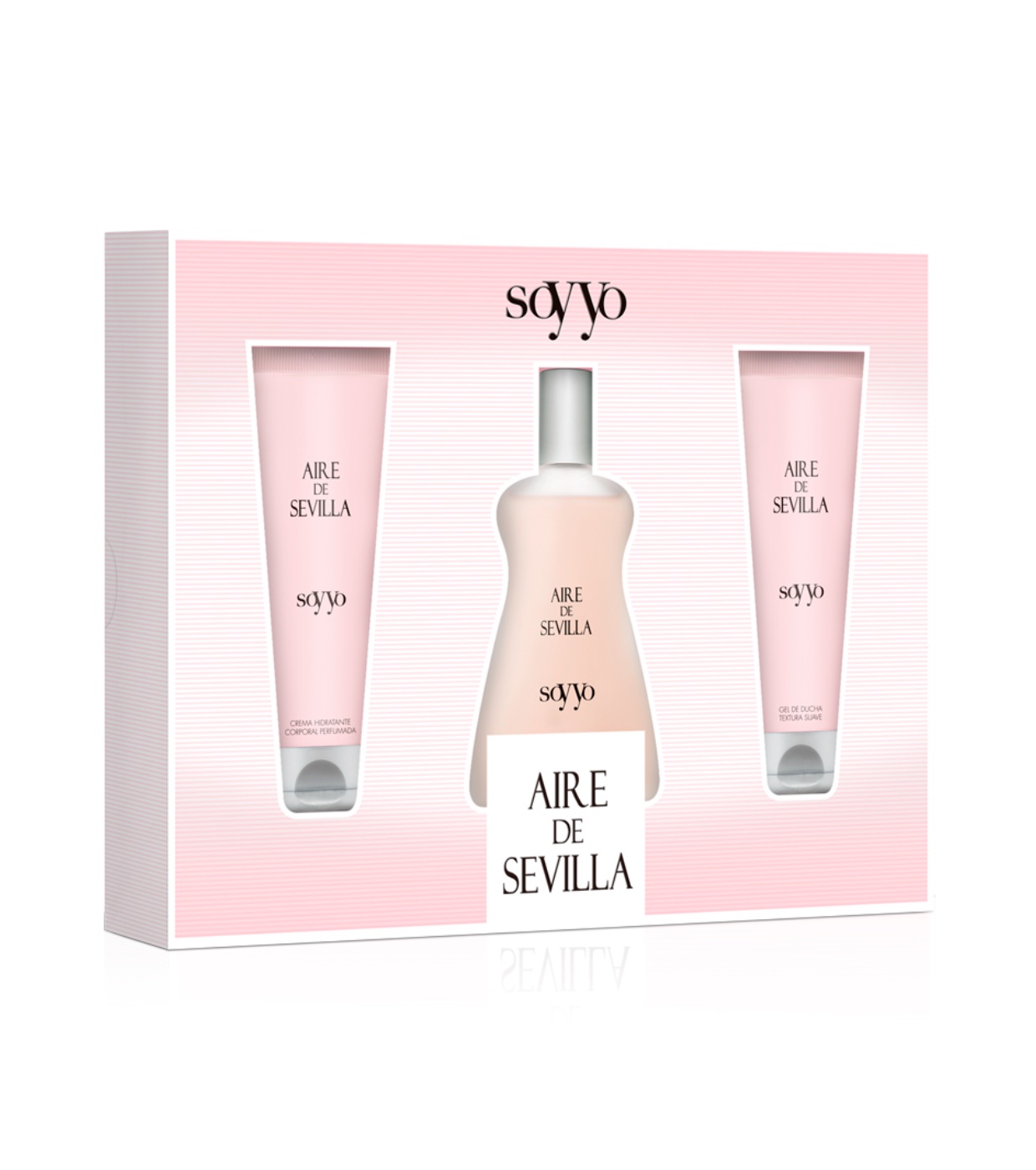 Aire de Sevilla Set Eau de toilette für Frauen + Feuchtigkeitscreme + Duschgel Soy Yo ein bernsteinfarbener und blumiger Duft, der Raffinesse und Authentizität ausstrahlt und die Essenz moderner Weiblichkeit einfängt.