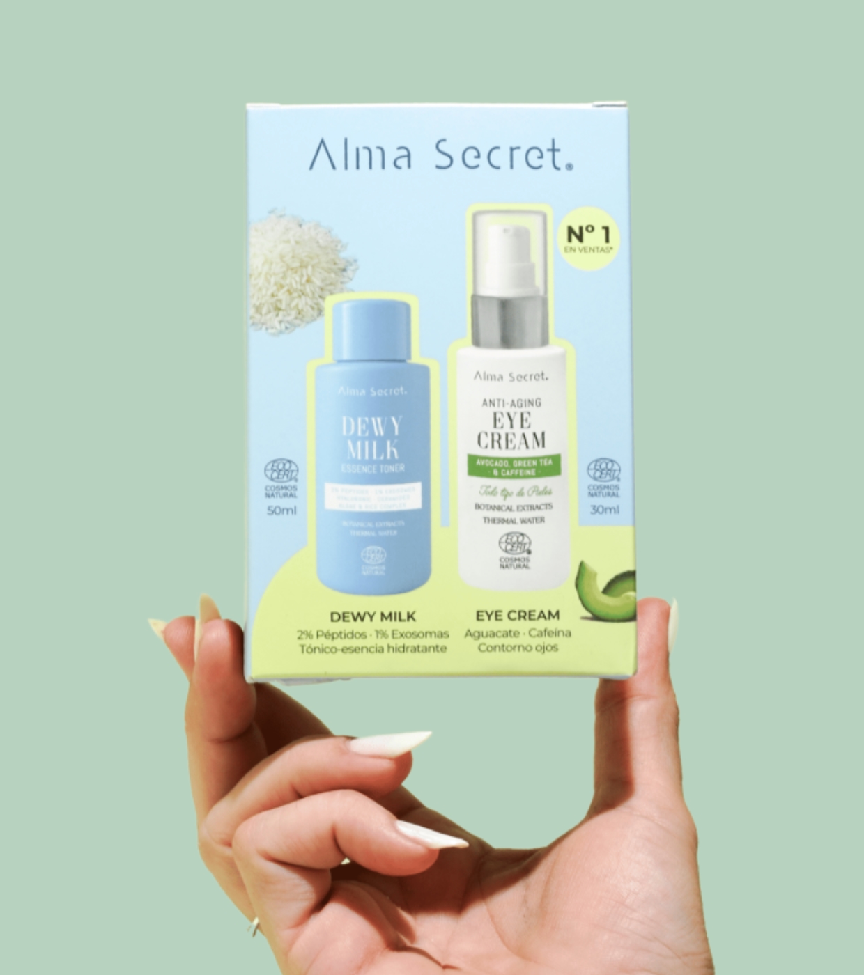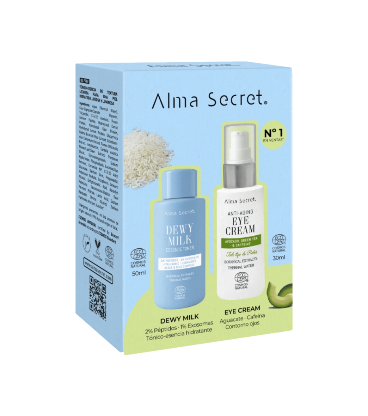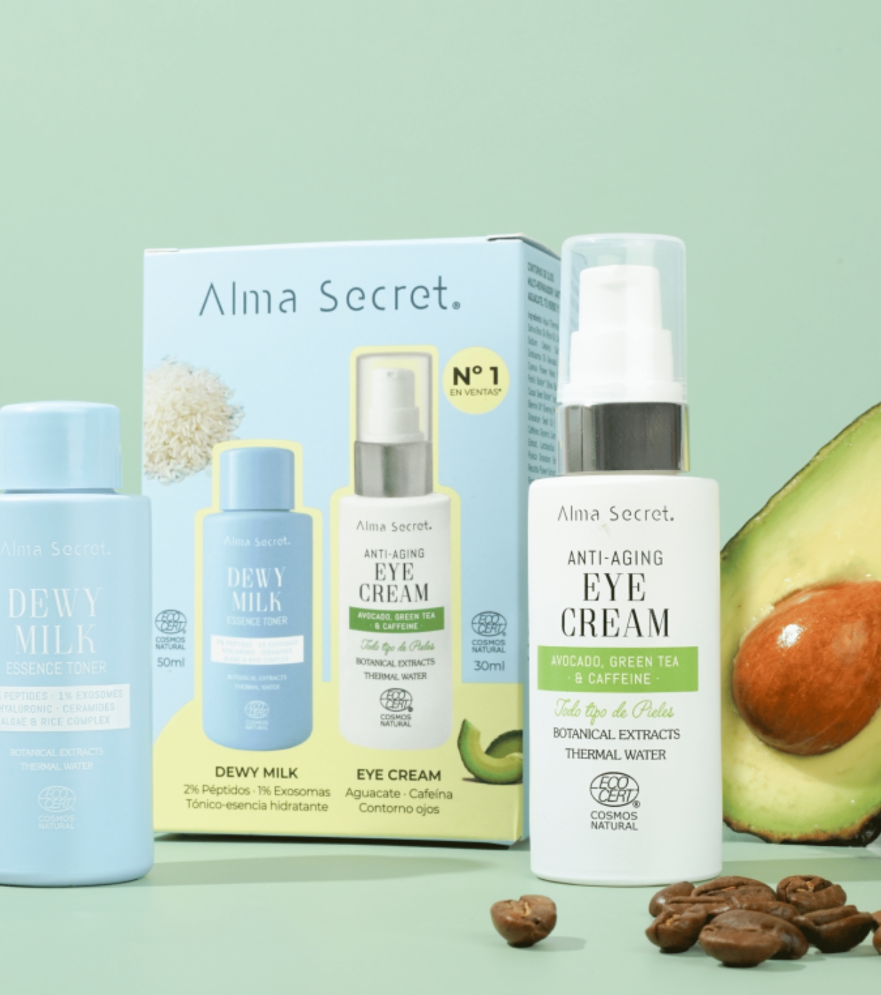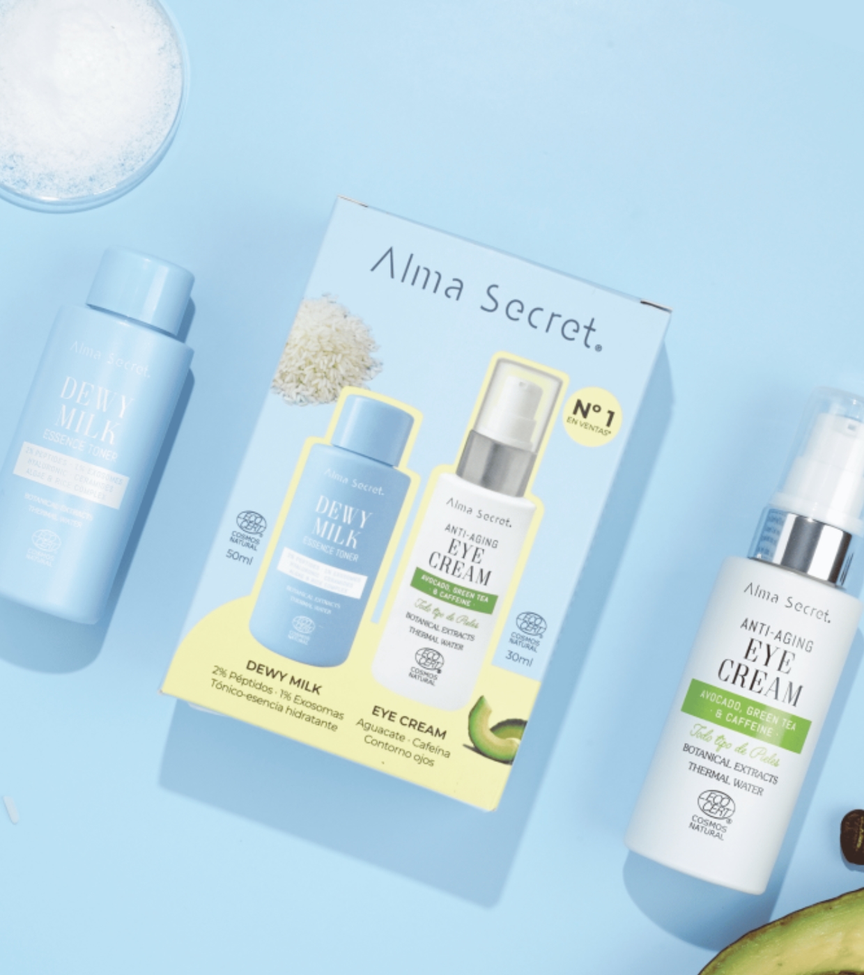 Dieses tägliche Duo aus Eye Contour Set & Mini Dewy Milk von Alma Secret kombiniert zwei fortschrittliche Formeln, die in perfekter Synergie wirken, um die Hautstruktur zu verbessern, die Hautbarriere zu stärken und Anzeichen von Müdigkeit sowohl im Gesicht als auch an der Augenkontur zu bekämpfen.