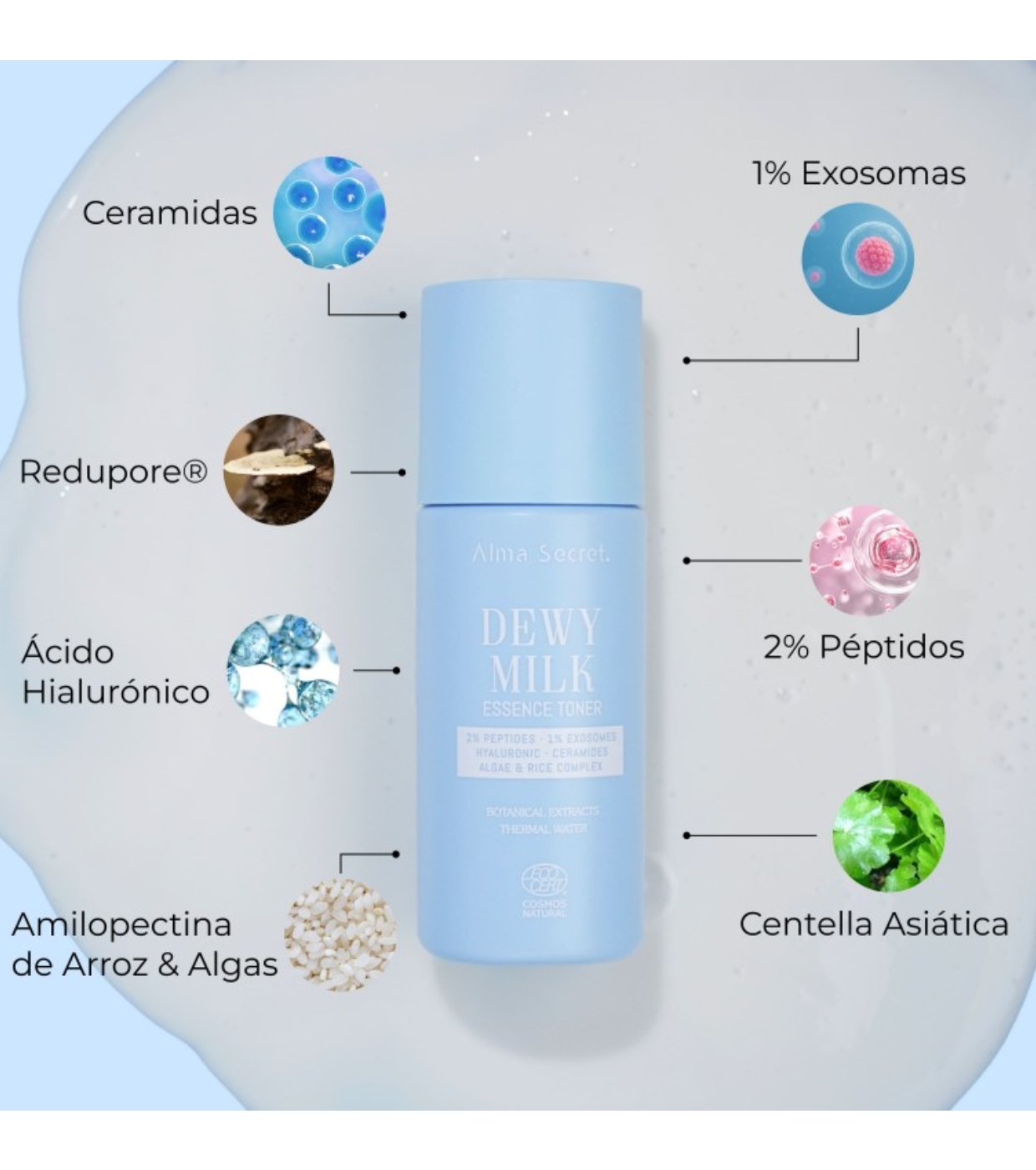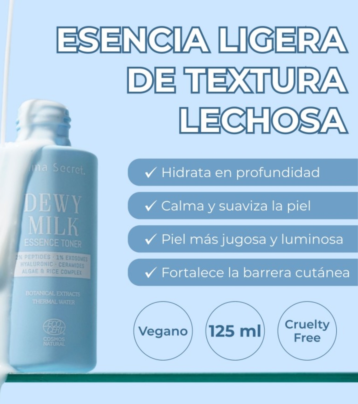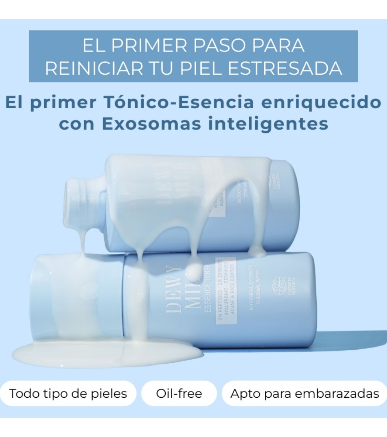 Dewy Milk Essence Toner Dewy Milk Essence Toner ist eine ölfreie Toner-Essenz mit einer milchigen und leichten Textur, die die Haut vom ersten Gebrauch an tiefenwirksam mit Feuchtigkeit versorgt, beruhigt und weich macht.