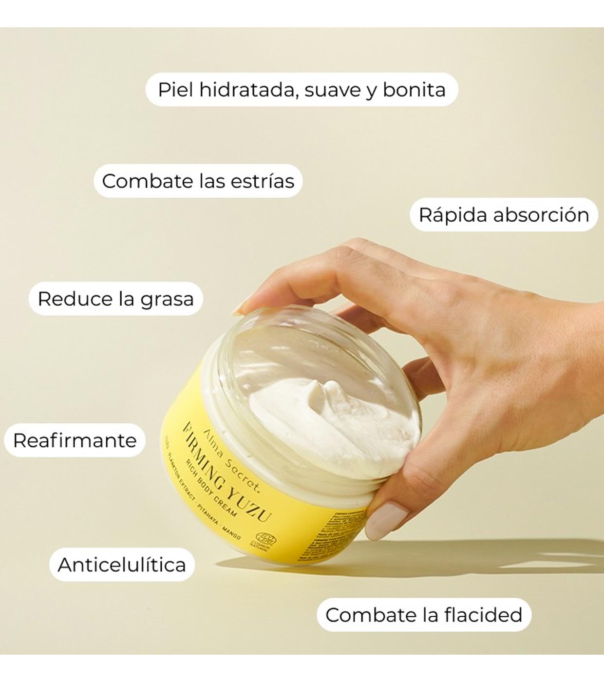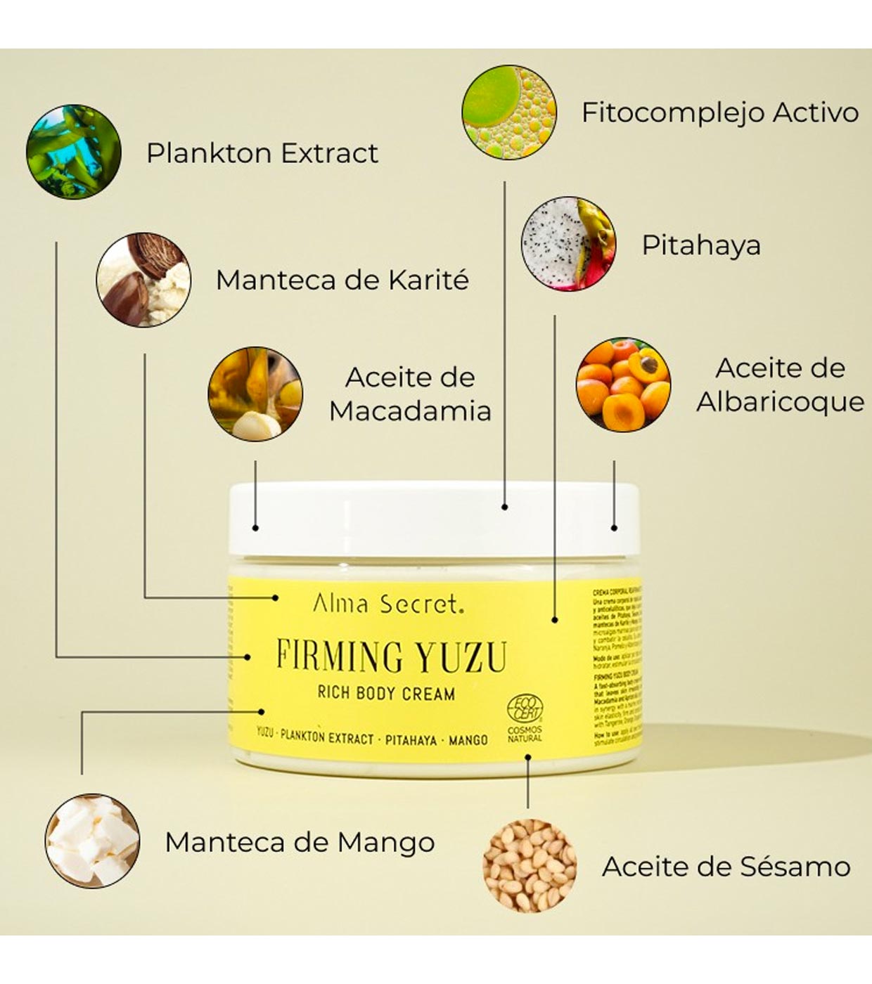 Firming Yuzu Rich Body Cream von Alma Secret ist eine schnell einziehende Körperfeuchtigkeitscreme mit straffenden und Anti-Cellulite-Eigenschaften, die dazu beiträgt, die Haut vor täglichen Stressfaktoren zu schützen und ihre Leuchtkraft zu verbessern.