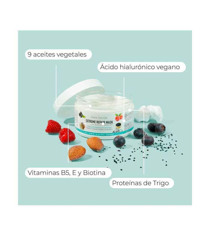Aqua (Thermal water), Cetearyl Alcohol, Distearoylethyl Dimonium Chloride, Behentrimonium Methosulfate, Glycerin, Hydrolized Wheat Protein, Betaine, Euterpe Oleracea Fruit Oil (Acai Oil), Adansonia Digitata Seed Oil (Baobab Oil), Nigella Sativa Seed Oil (Black Seed Oil), Rubus Idaeus Seed Oil (Raspberry Oil), Rosa Moschata Seed Oil, Butyrospermum Parkii Butter (Shea Butter), Hyaluronic Acid, Biotin (Vitamin H), Simmondsia Chinensis Seed Oil (Jojoba Oil), Oenothera Biennis Oil (Evening Primrose Oil), Panthenol (provitamin B5), Tocopherol (Vitamin E), Lamium Album Extract, Prunus Amigdalus Dulcis Oil, Theobroma Cacao Seed Butter, Ascorbyl Palmitate, Lactic Acid, Parfum, Potassium Sorbate, Sodium Benzoate, Dehydroacetic Acid, Benzyl Alcohol.