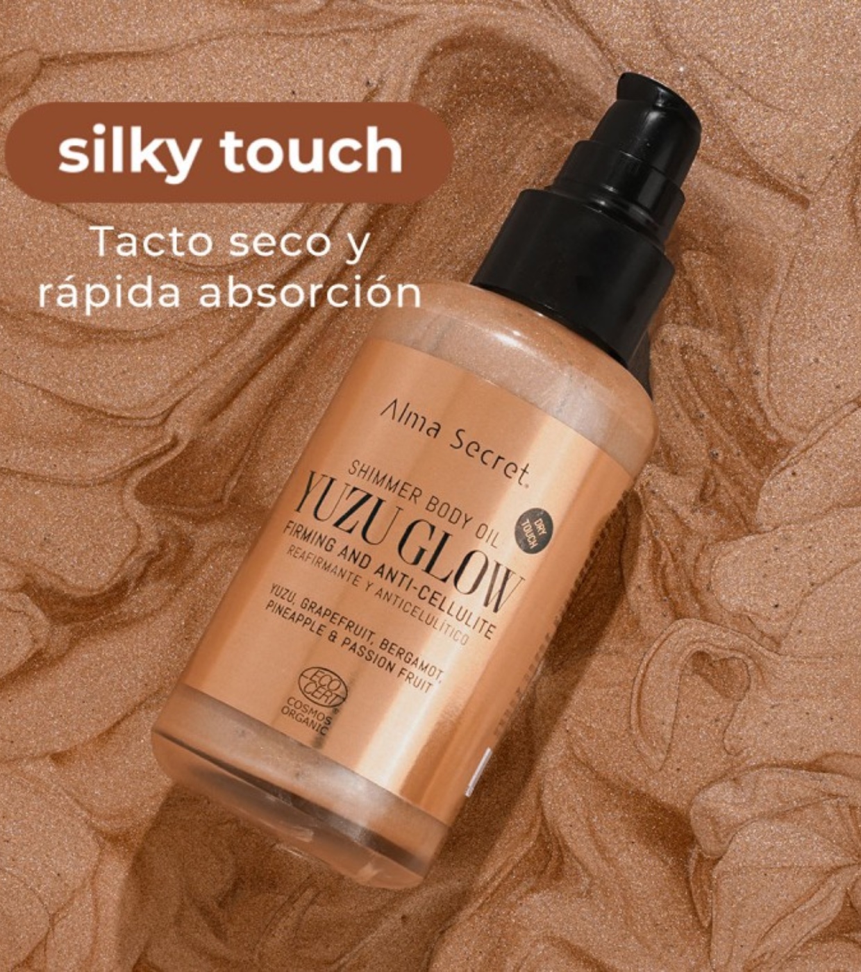Erhalten Sie strahlende und sexy Haut mit diesem luxuriösen, leuchtenden Öl mit trockenem Griff und seidigem Finish „Silky Touch“, das auch die Elastizität verbessert, festigt und Cellulite, Dehnungsstreifen und Erschlaffung bekämpft.