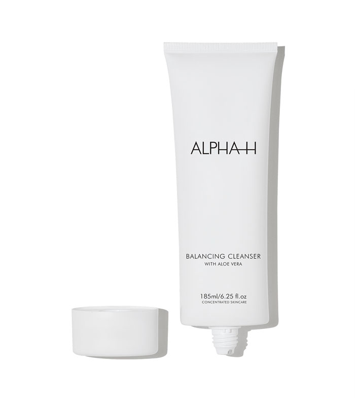 Alpha-H Balancing Cleanser mit Aloe Vera ist ein cremiger Multifunktionsreiniger, der dank seiner sanften Formel Make-up und Unreinheiten entfernt.