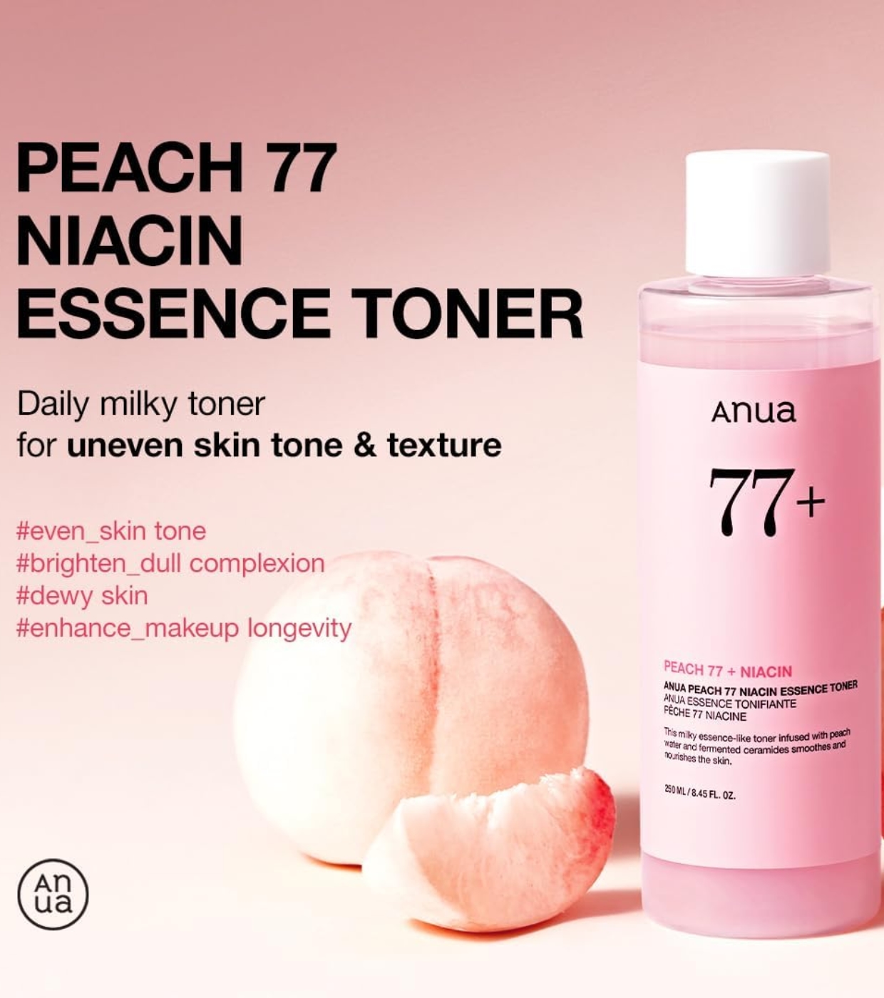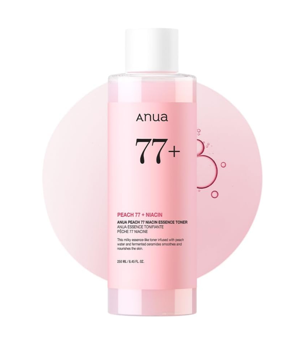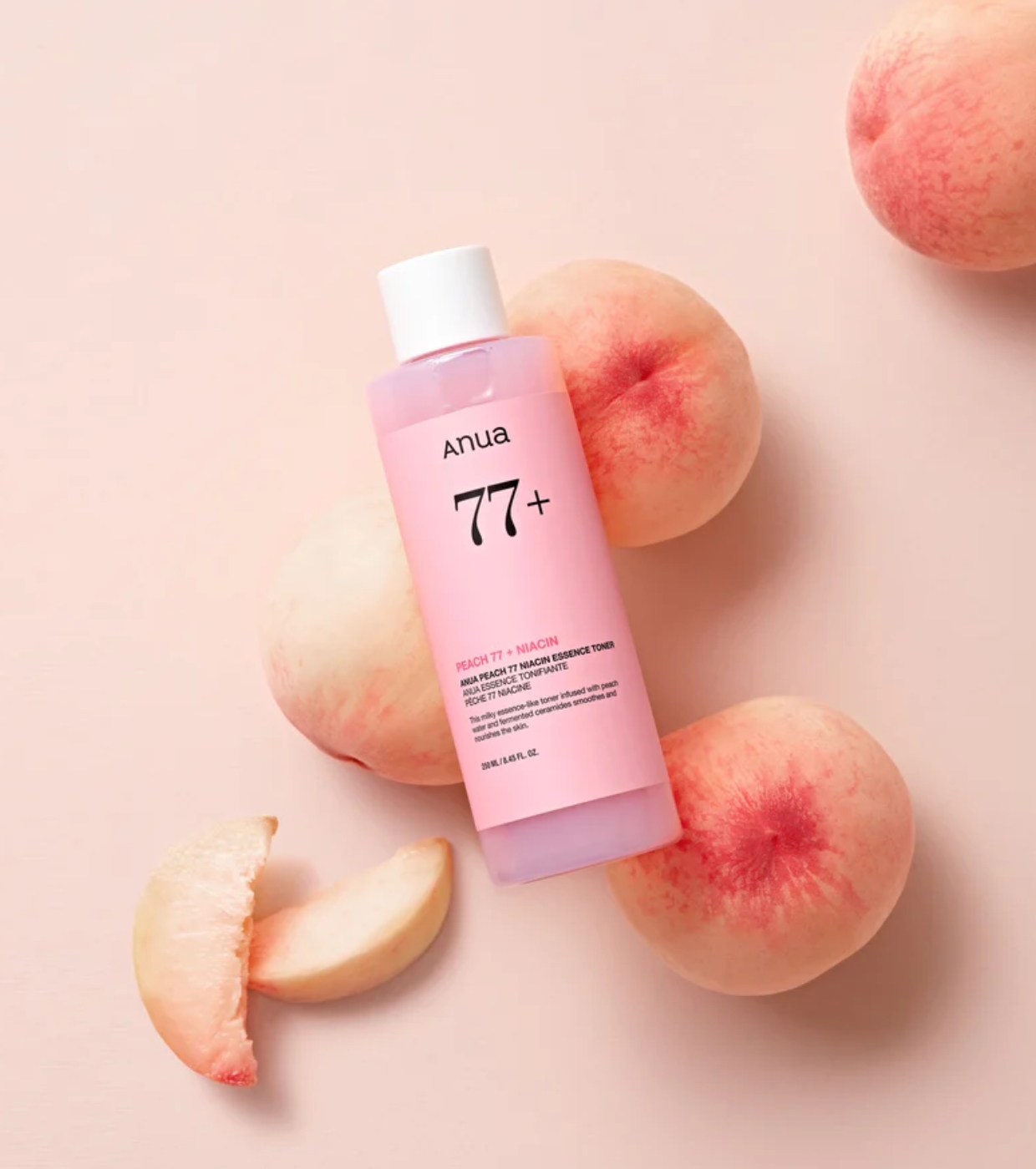 Der Anua Peach 77% Niacin Essence Toner ist ein erfrischender Essence Toner, der mit 77% Pfirsichextrakt (Prunus Persica) formuliert ist und sich ideal zum Befeuchten, Weichmachen und Vorbereiten der Haut vor dem Make-up eignet.