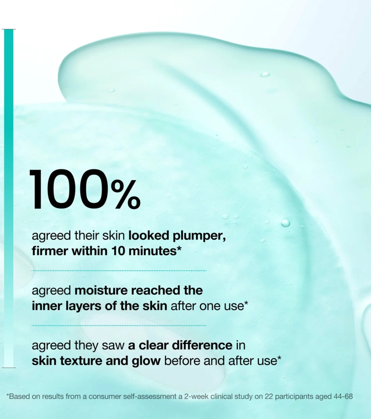 Dank des ultradünnen Hydrogels schmiegt sich die Maske perfekt an das Gesicht an und ermöglicht so eine optimale Aufnahme der Wirkstoffe. Erste Ergebnisse sind bereits nach der ersten Anwendung sichtbar.