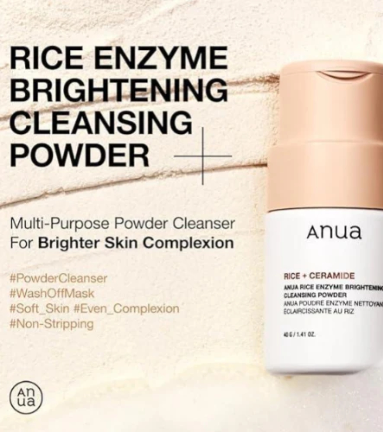 Anua Rice Enzyme Brightening Cleansing Powder ist ein Reinigungspuder, das Ihre Gesichtspflege in ein sanftes und dennoch wirksames Erlebnis verwandelt und Ihre Haut sauber, strahlend und sichtbar gesünder macht.