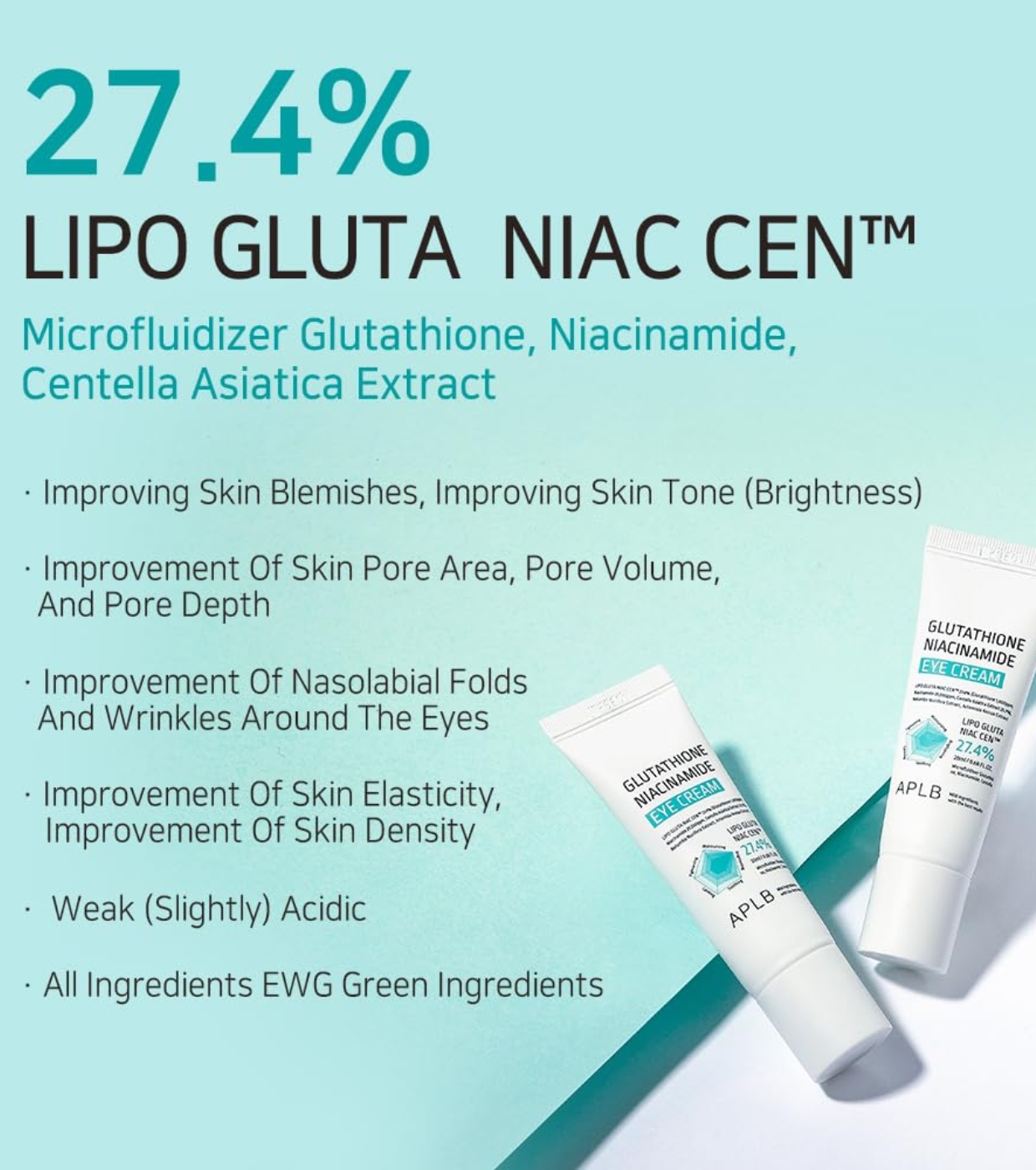 Die Glutathione Niacinamide Eye Cream von APLB ist eine leichte Augencreme, die entwickelt wurde, um die empfindliche Haut um die Augen mit Feuchtigkeit zu versorgen, aufzuhellen und ihre Elastizität zu verbessern.