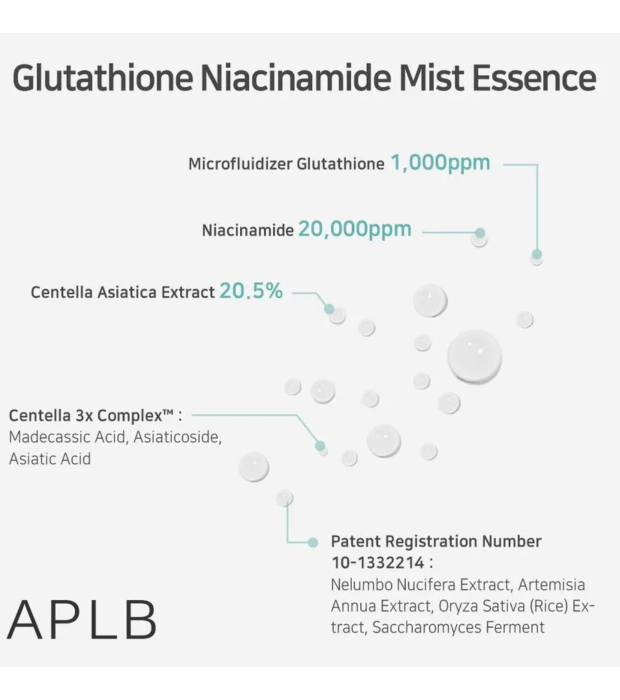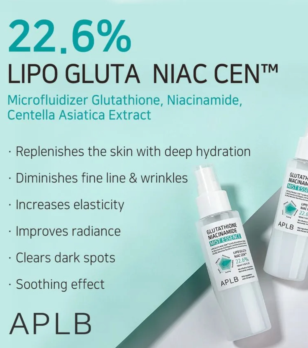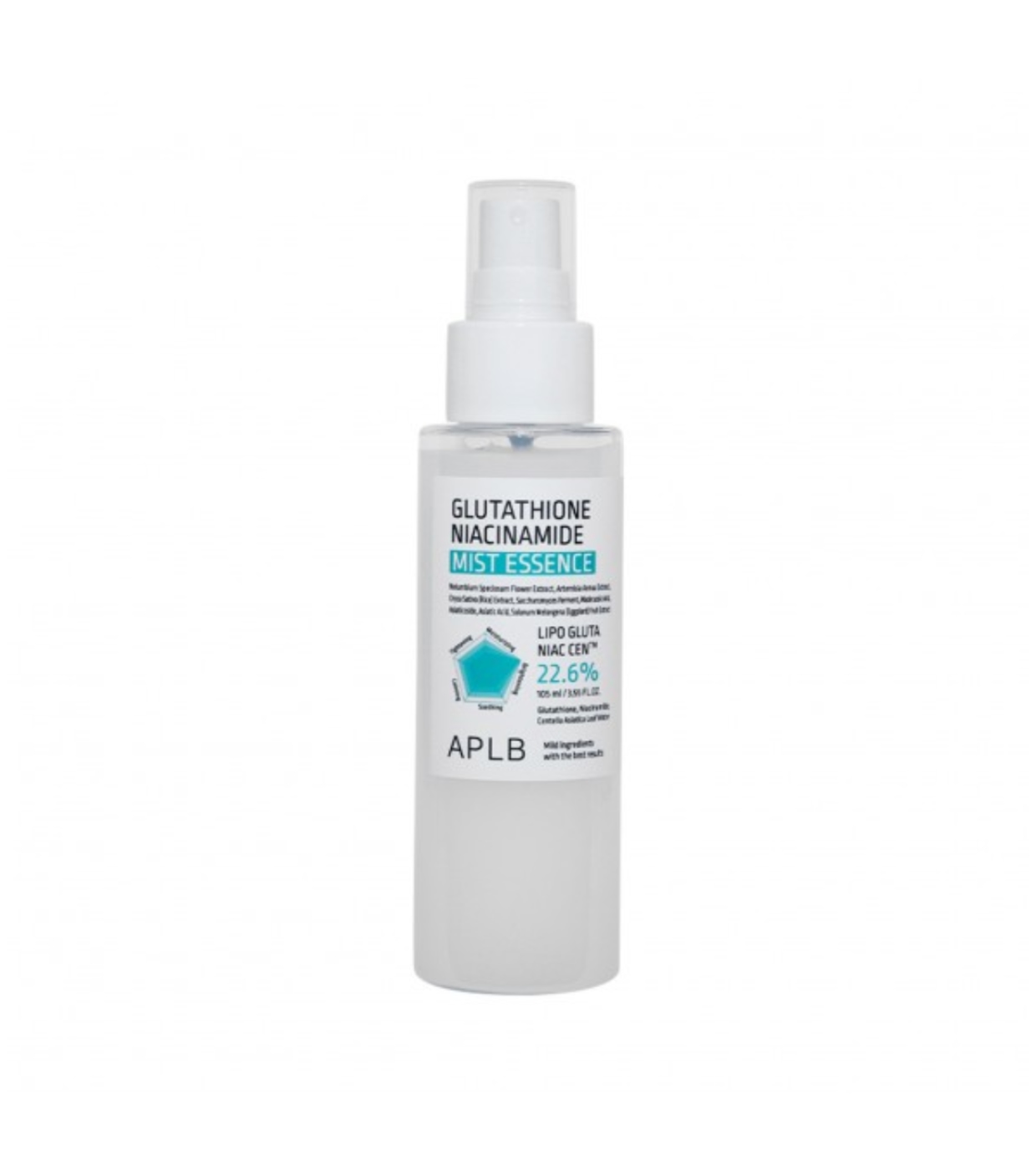 Glutathione Niacinamide Mist Essences APLB ist eine Gesichtsessenz im Nebelformat, die die Haut zu jeder Tageszeit mit Feuchtigkeit versorgt, beruhigt und zum Strahlen bringt.