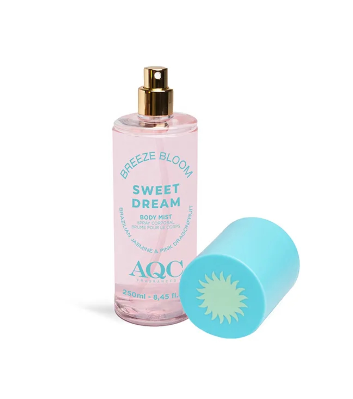 Lassen Sie sich von der Frische des duftenden Körpersprays Sweet Dream Breeze Bloom von AQC umhüllen, einem strahlenden Duft, der an einen sonnendurchfluteten Garten am Meer erinnert.