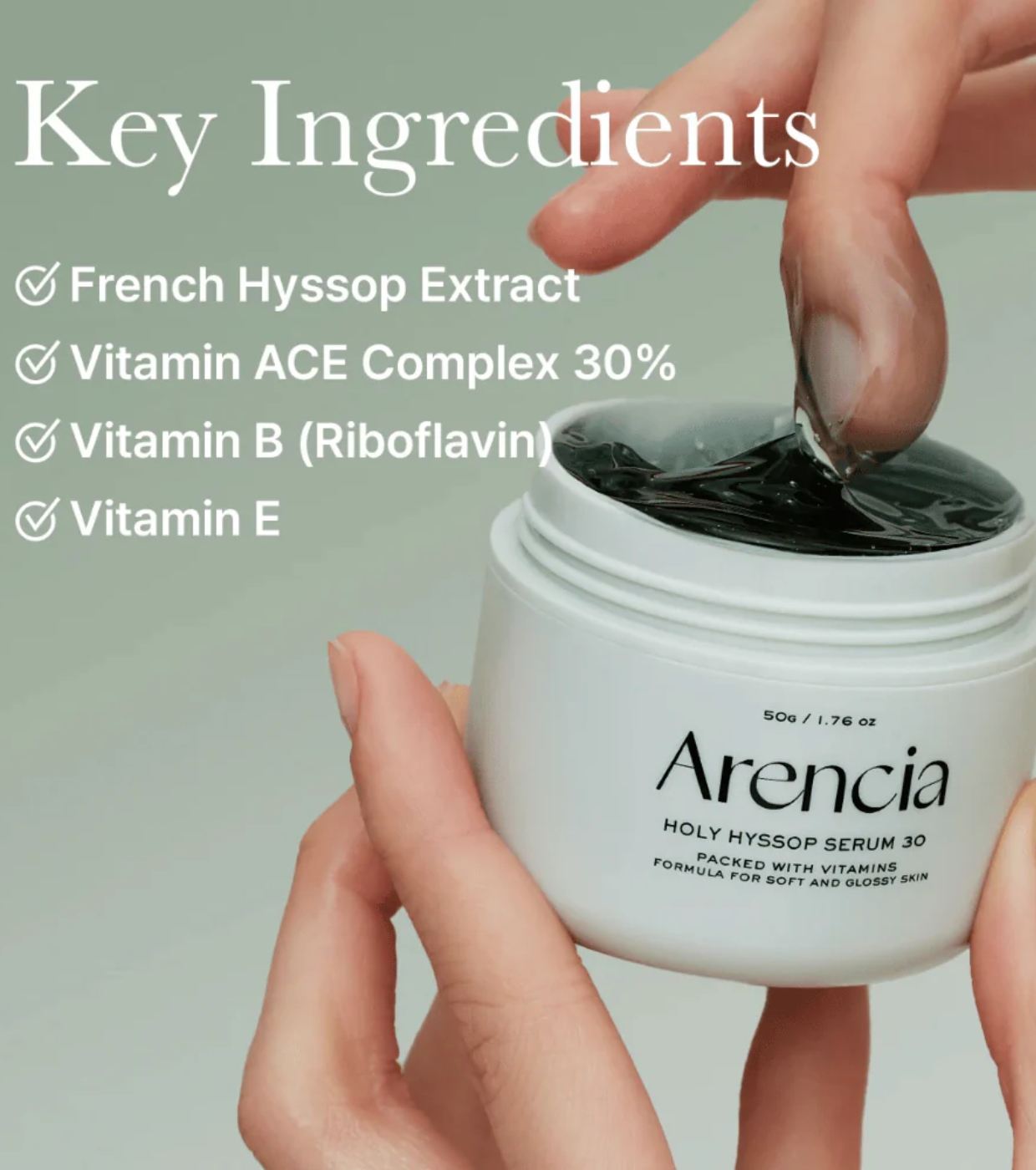 Dieses Serum mit gelartiger Textur Holy Hyssop Serum 30 von Arencia wurde entwickelt, um Hyperpigmentierung zu bekämpfen, den Teint aufzuhellen und die Hautstruktur zu verbessern, ohne ein fettiges Gefühl zu hinterlassen.