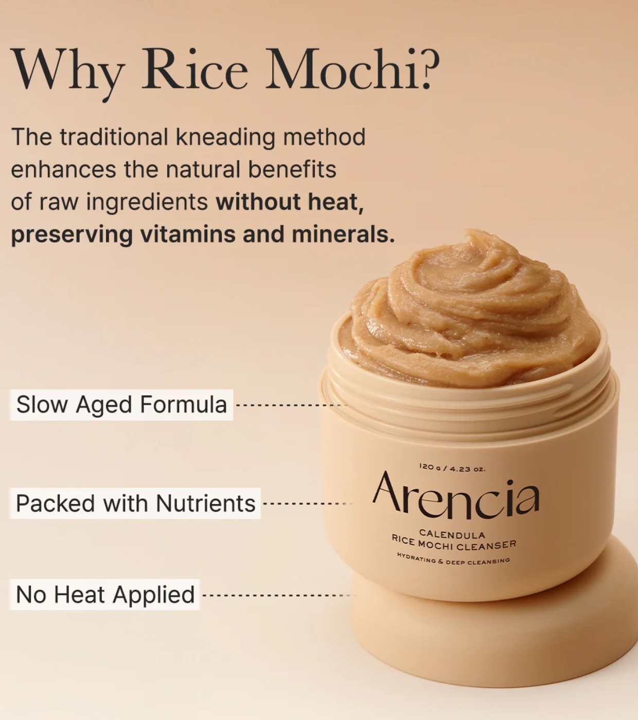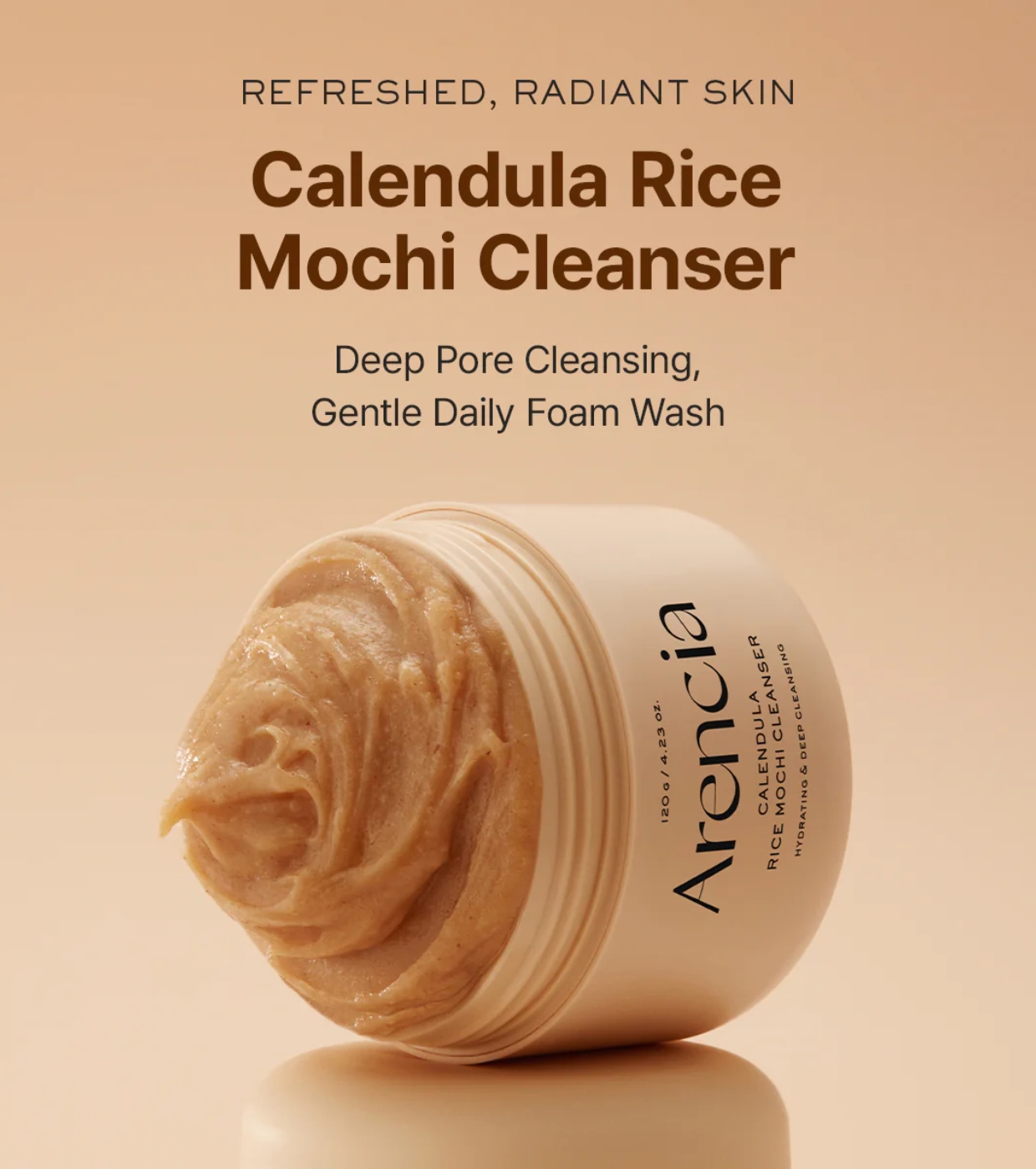 Der Calendula Rice Mochi-Reiniger von Arencia ist ein täglicher, schäumender Gesichtsreiniger, der entwickelt wurde, um empfindliche, trockene oder gereizte Haut zu beruhigen, zu pflegen und zu schützen.