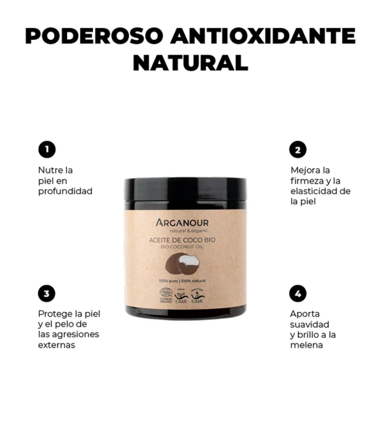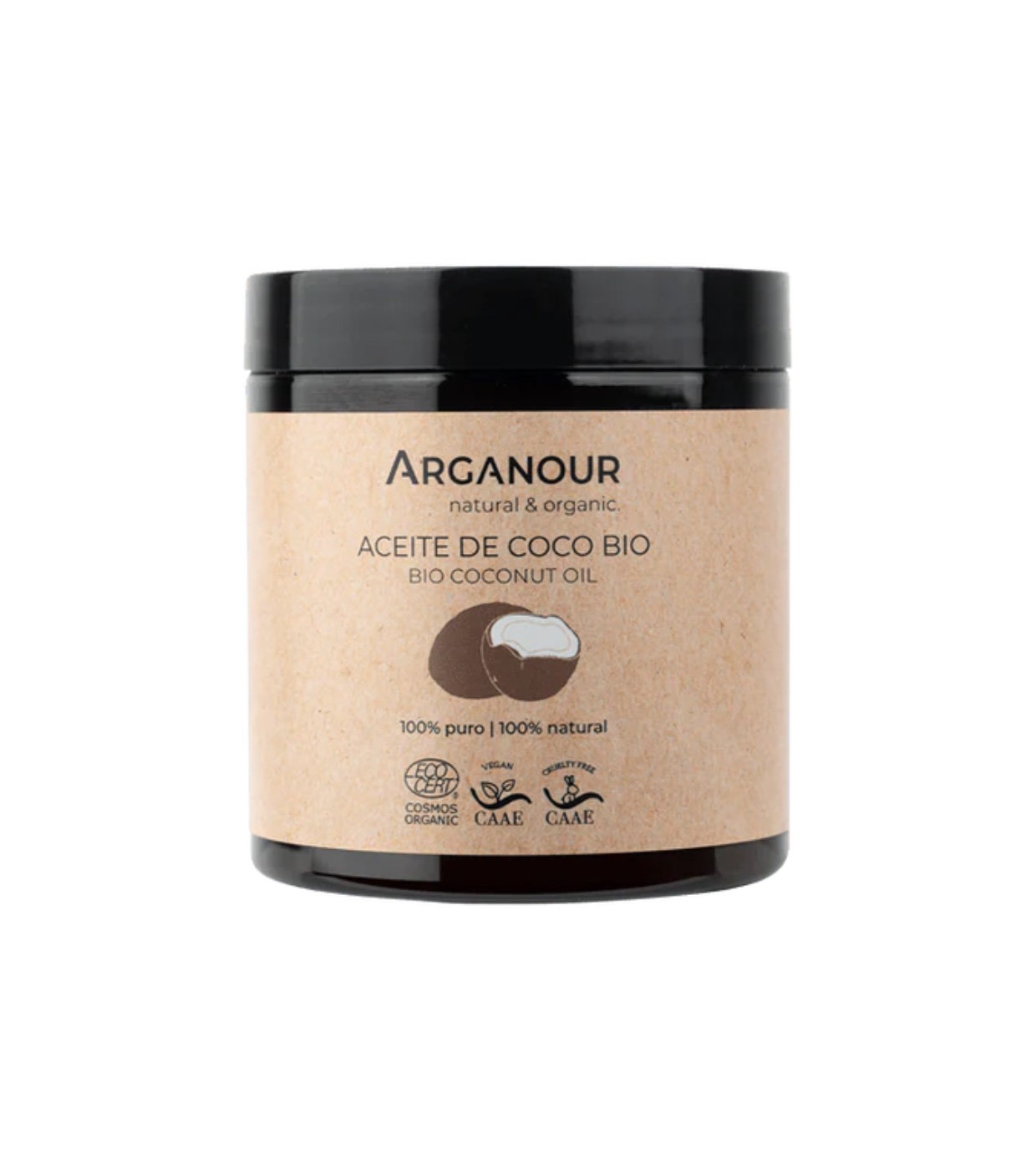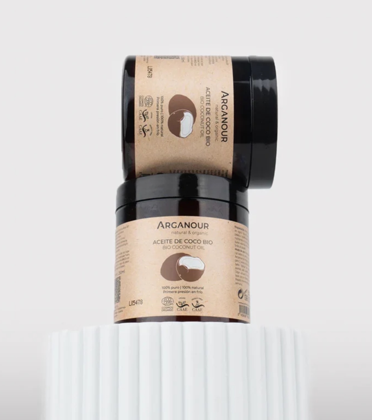 Das 100 % reine Bio-Kokosöl von Arganour wird aus biologisch angebauten Kokosnüssen hergestellt.