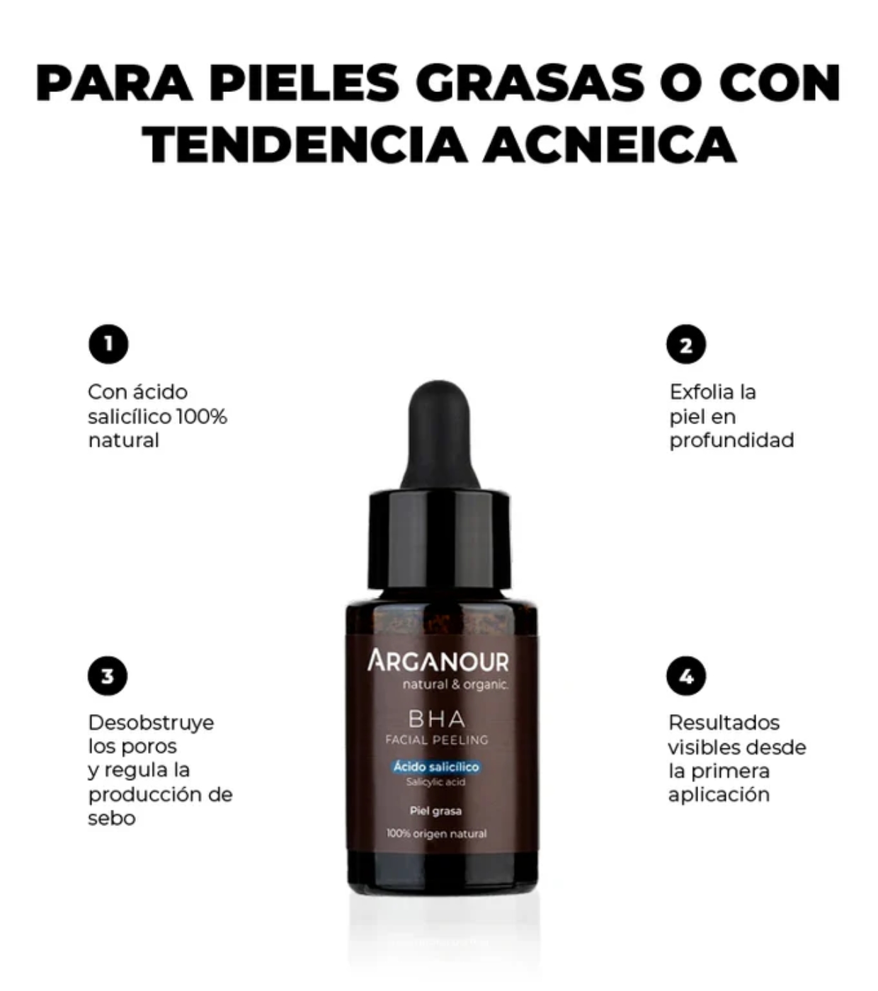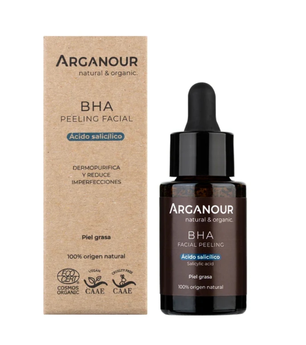 Entdecken Sie das leistungsstarke BHA-Serum (mit natürlicher Salicylsäure) von Arganour , das die Poren öffnet, abschwellende Wirkung hat, abgestorbene Hautzellen entfernt, die Poren verkleinert und Hautunreinheiten reduziert.