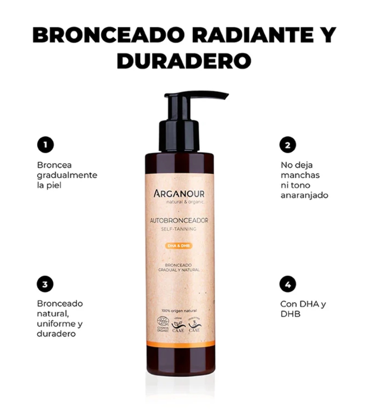 Der Selbstbräuner von Arganour ist die beste Option, um das ganze Jahr über gebräunte, hydratisierte und strahlende Haut zu erhalten, ohne die schädlichen Auswirkungen der Sonneneinstrahlung.