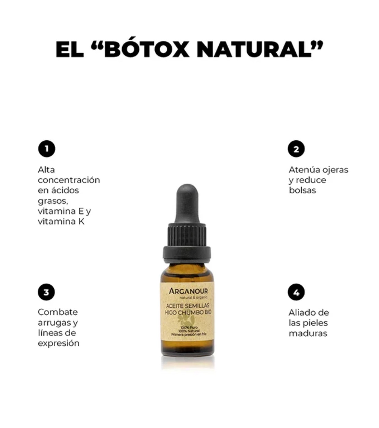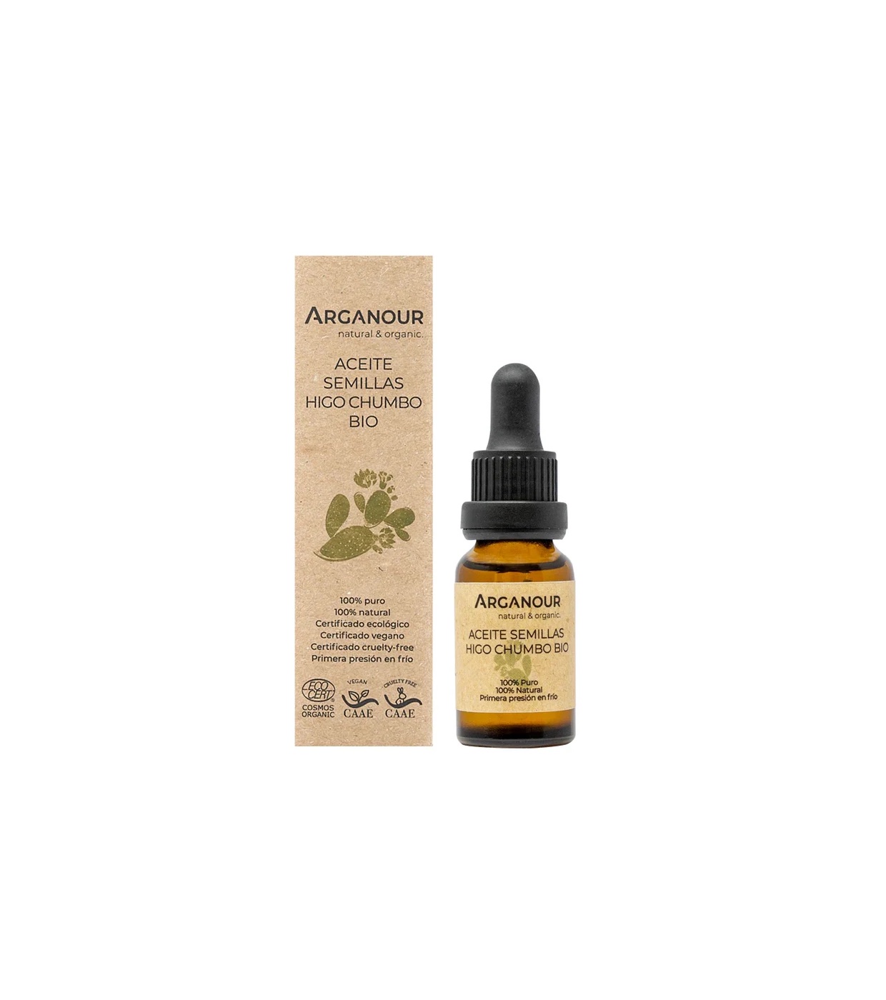 Kaktusfeigenöl natürlichen Ursprungs ist ein starker Zellregenerator, der zur Behandlung reifer und geschädigter Haut angezeigt ist.