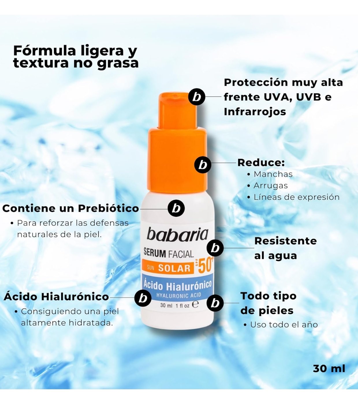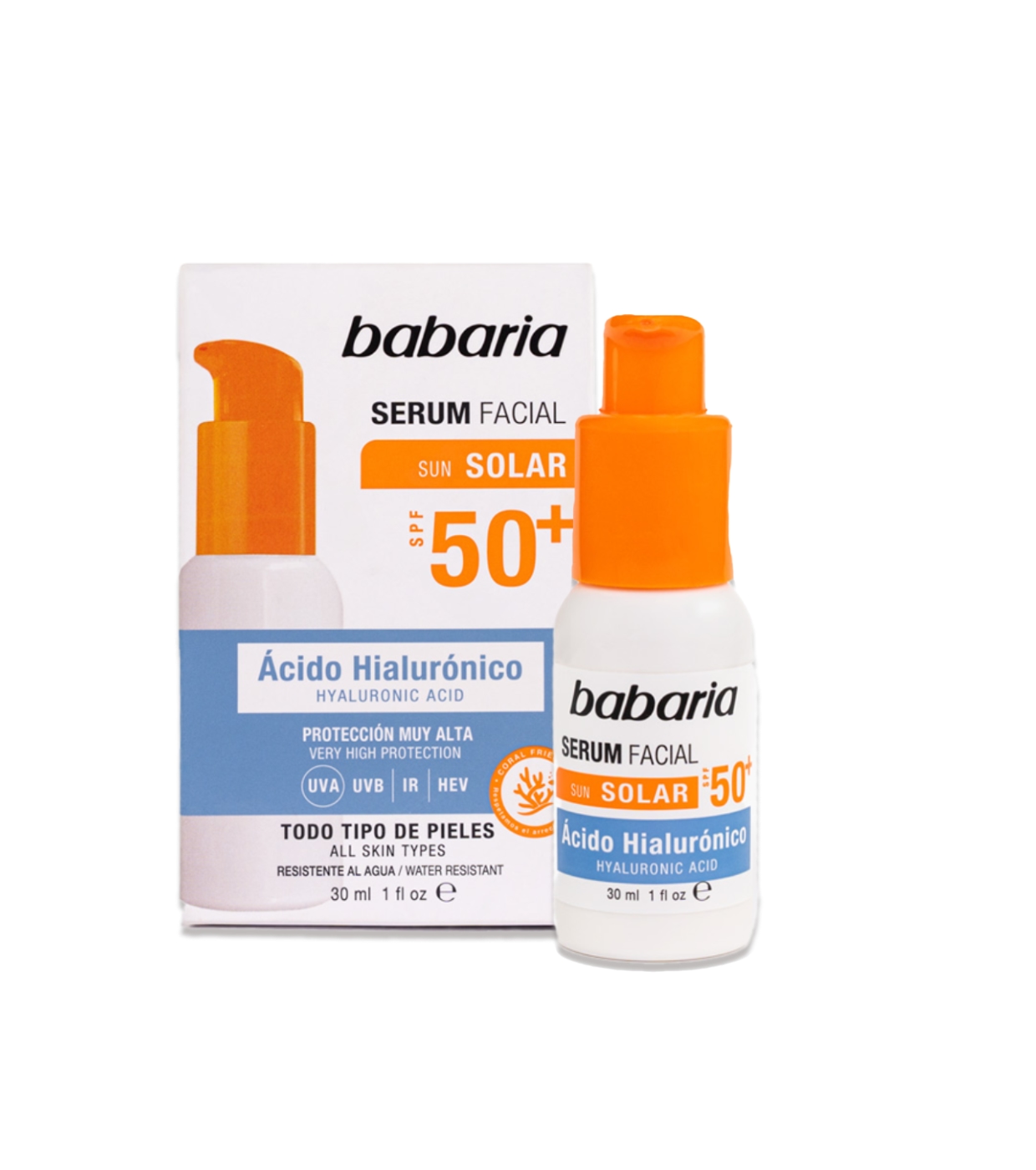 Babaria Illuminating Facial Serum mit Hyaluronsäure LSF 50+ kombiniert Behandlung und Schutz in einem einzigen Schritt.