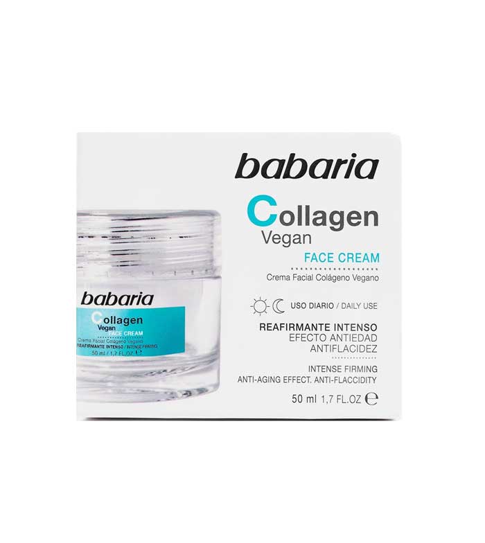 Straffende Gesichtscreme mit Babaria Vegan Collagen , die Zeichen der Hautalterung wie Falten und Krähenfüße korrigiert und die Haut sichtbar verjüngt.