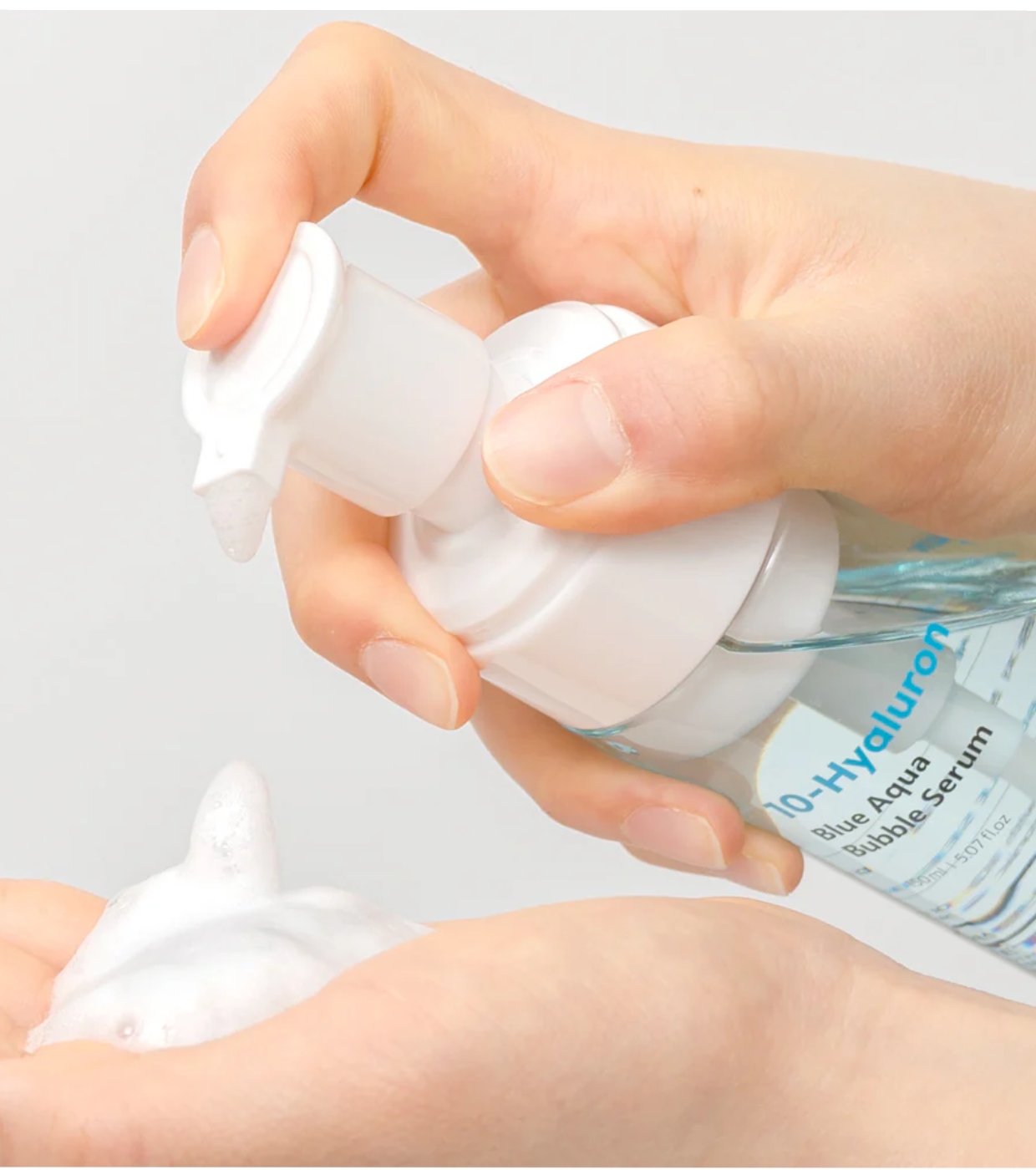 Das 10-Hyaluron Blue Aqua Bubble Serum von Brulab ist eine innovative schaumartige Behandlung, die ab der ersten Anwendung intensive Feuchtigkeit spendet, sofortige Beruhigung bietet und die Hautbarriere stärkt.