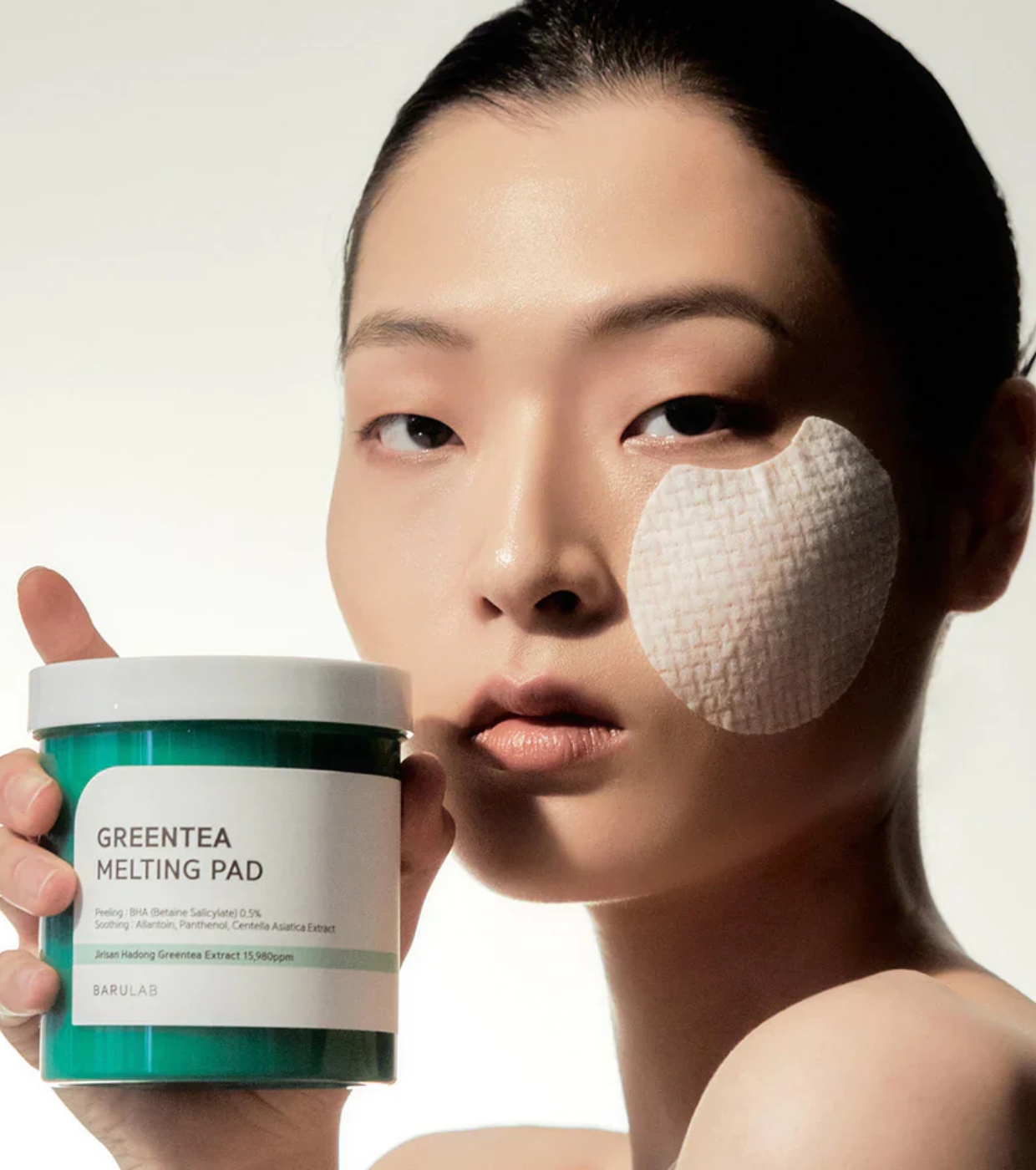 Die Green Tea-Pads von Barulab bieten beruhigende und peelende Gesichtspflege in einer praktischen Packung mit 150 Pads aus reiner Baumwolle, perfekt für den täglichen Gebrauch.