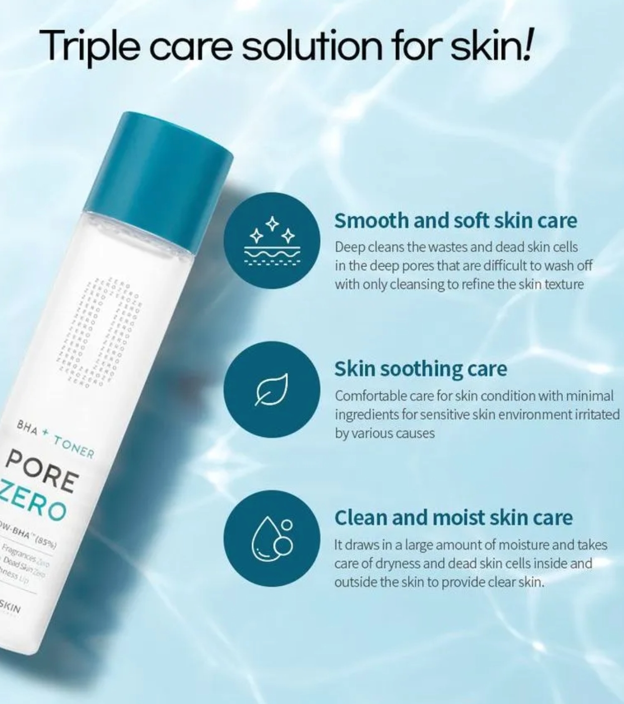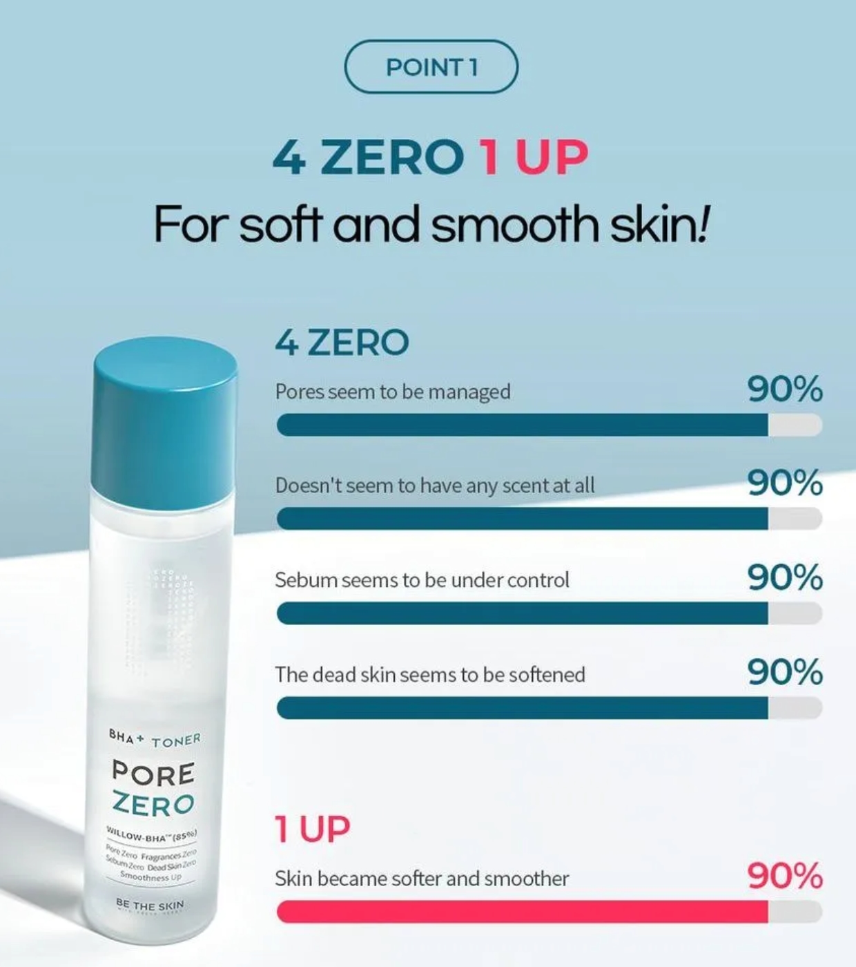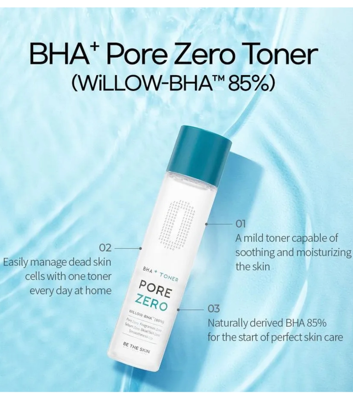 BHA+ Pore Zero Toner BHA+ Pore Zero Toner ist ein beruhigendes Peeling-Gesichtswasser, das hilft, die Haut auszugleichen, Unreinheiten zu reduzieren und die Poren zu verfeinern, ohne Reizungen zu verursachen.
