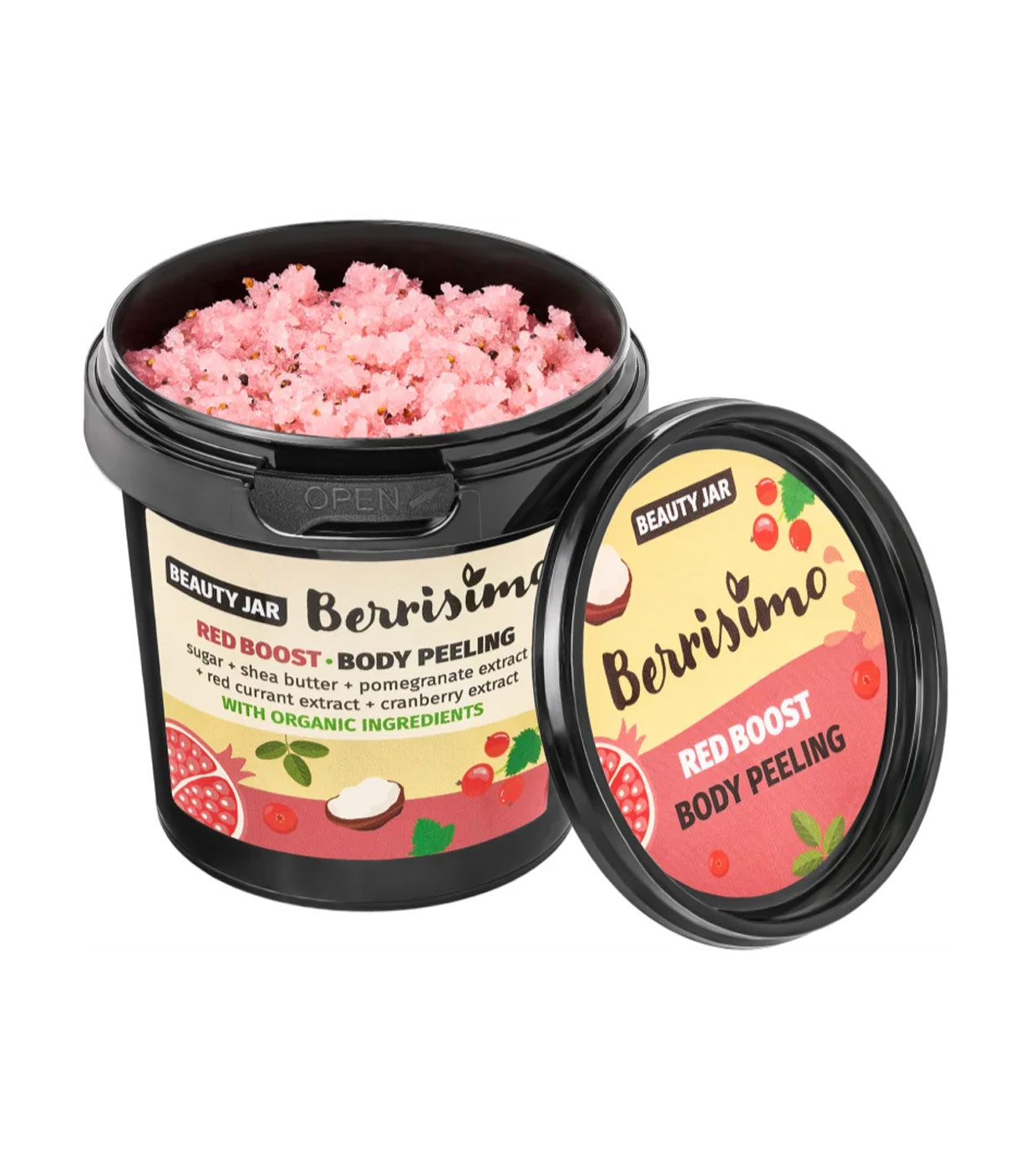 - 1 x Red Boost Peeling 160 g: Zucker, Sheabutter, Granatapfelextrakt, roter Johannisbeerextrakt und Preiselbeerextrakt versorgen Ihre Haut mit Energie und machen sie weich und revitalisiert.