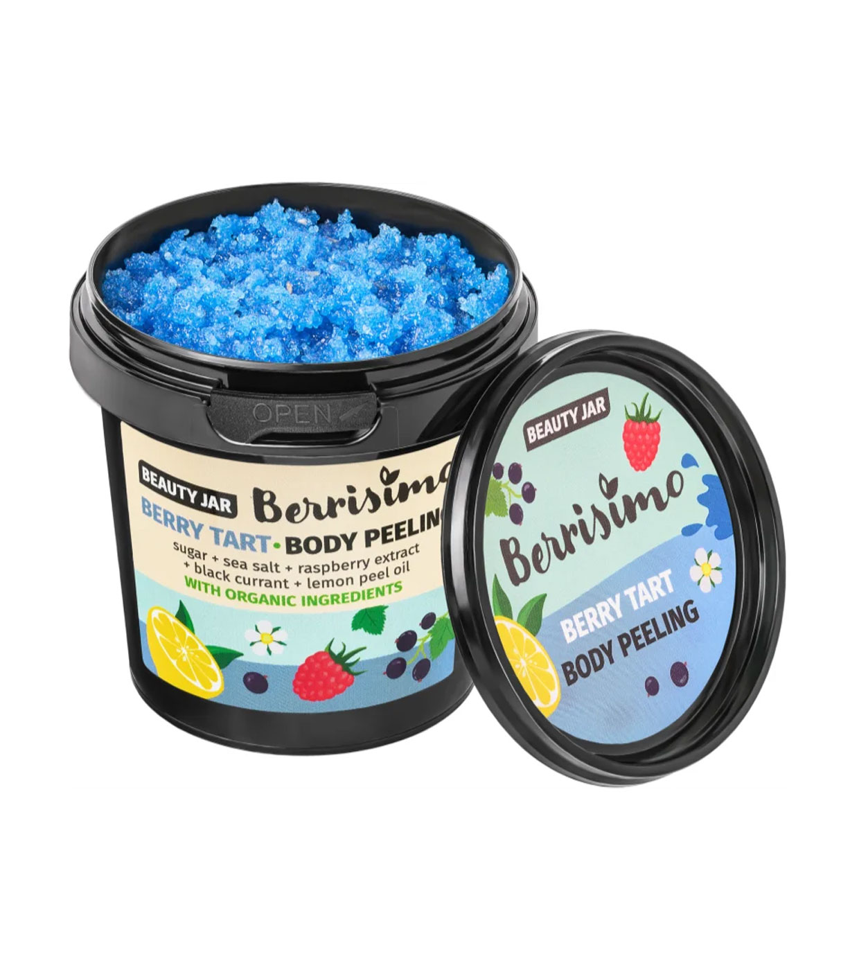 - 1 x Berry Tart Peeling 200g: Zucker, Meersalz, Himbeerextrakt, schwarzer Johannisbeerextrakt und Zitronenschalenöl vereinen sich zu einem Sinneserlebnis, das peelt, die Haut weich macht und einen köstlichen Duft nach frischen Früchten hinterlässt.
