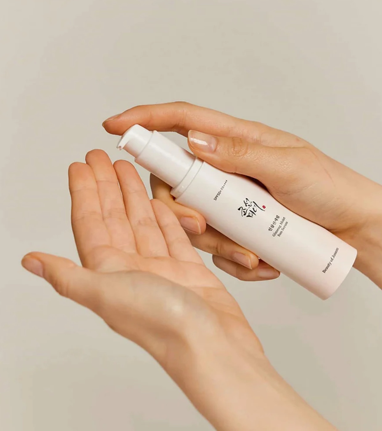 Feuchtigkeitsspendende Sonnenschutzserum-Textur LSF50+ von Beauty of Joseon.
