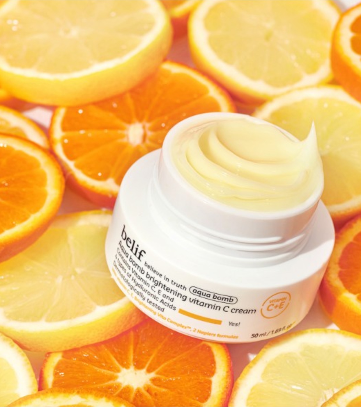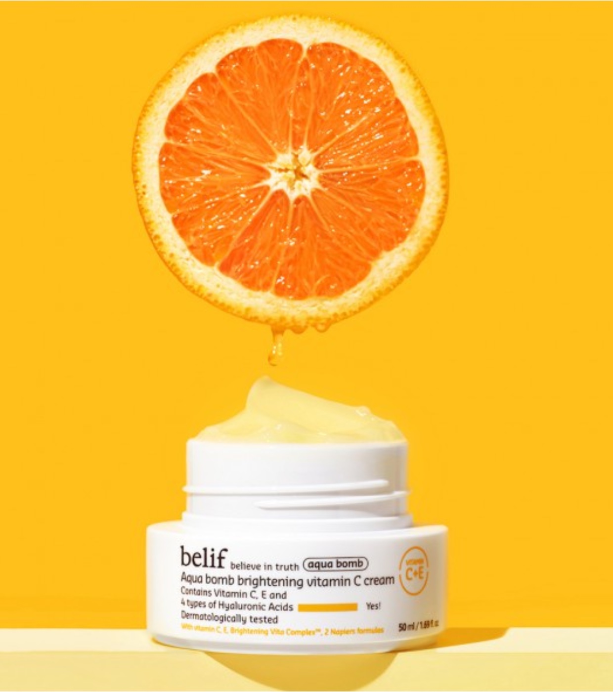 Aufhellende, feuchtigkeitsspendende Gelcreme mit Vitamin C Aqua Bomb von belif.