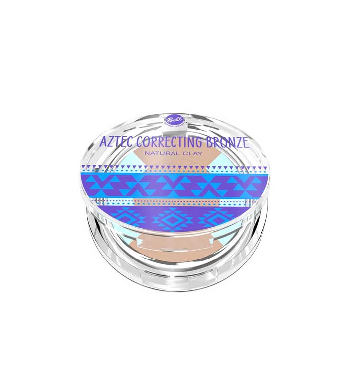 Bell's Natural Clay Aztec Queen Correcting Bronzer in Kombination mit dem hellblauen Puder neutralisiert perfekt Rötungen und gleicht den Hautton aus.