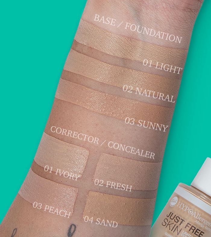 Der Concealer Just Free Skin enthält Glycerin und Aloe Vera-Blattextrakt, sodass die Haut mit Feuchtigkeit versorgt wird und gereizte oder geschädigte Haut beruhigt wird.