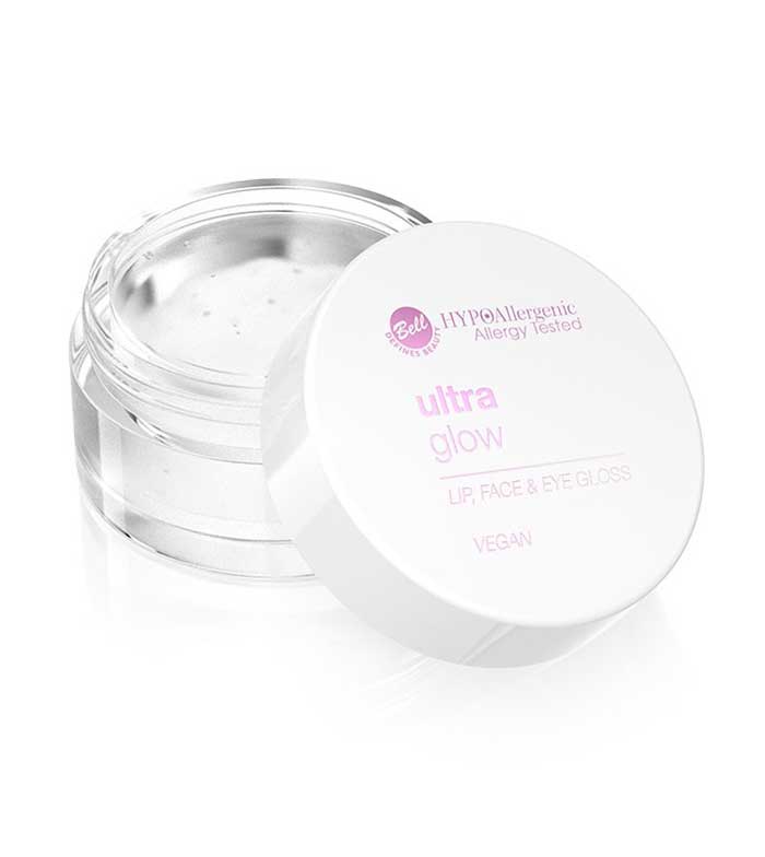 Bells innovativer transparenter Lippen-, Gesichts- und Augenlidgloss HypoAllergenic Ultra Glow sorgt für makellose Haut, die optisch glatt ist und wie eine Glasscheibe leuchtet.
