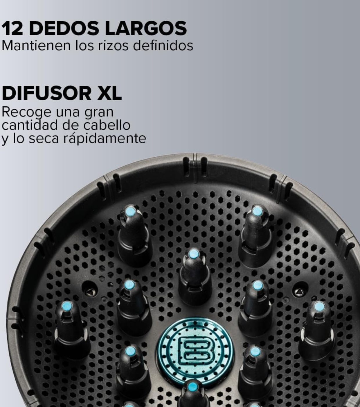 Mit einem XL-Diffusor, 12 langen Zinken und einer digitalen Wärmeregelung mit 50 Mal pro Sekunde ist es perfekt auch für lange und zarte Locken.