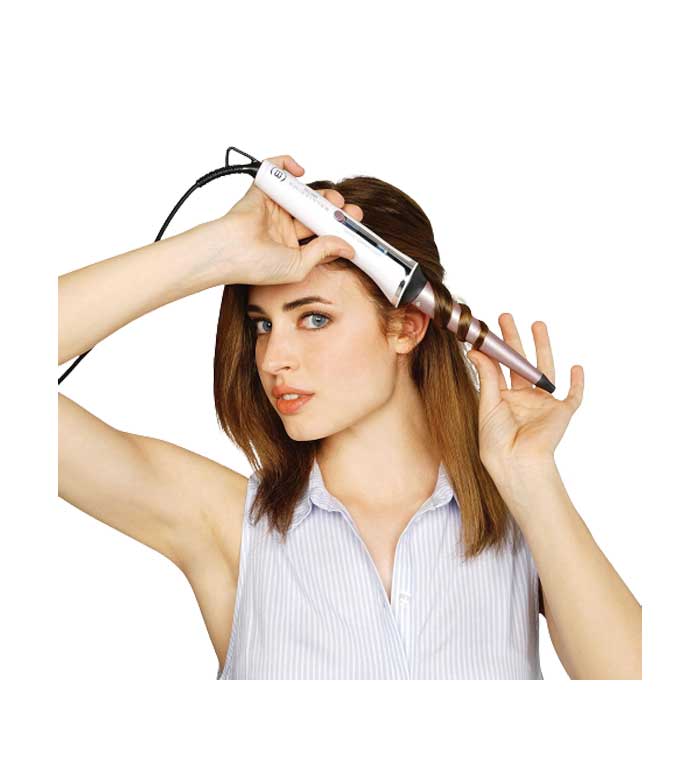 Dank der konischen Form des Lockenstabs, der von 25 bis 13 mm Durchmesser reicht, können Sie verschiedene Arten von Locken kreieren.