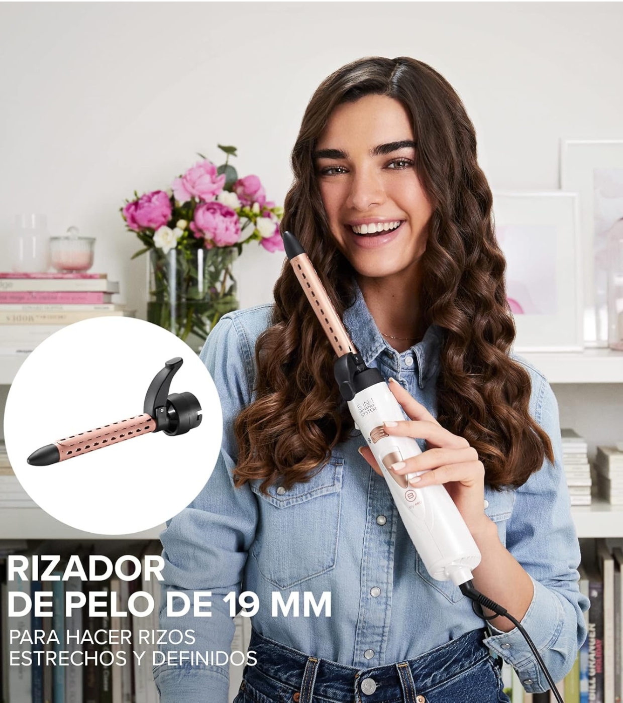 - 5 Zubehörteile zum Glätten, Locken oder Wellen.