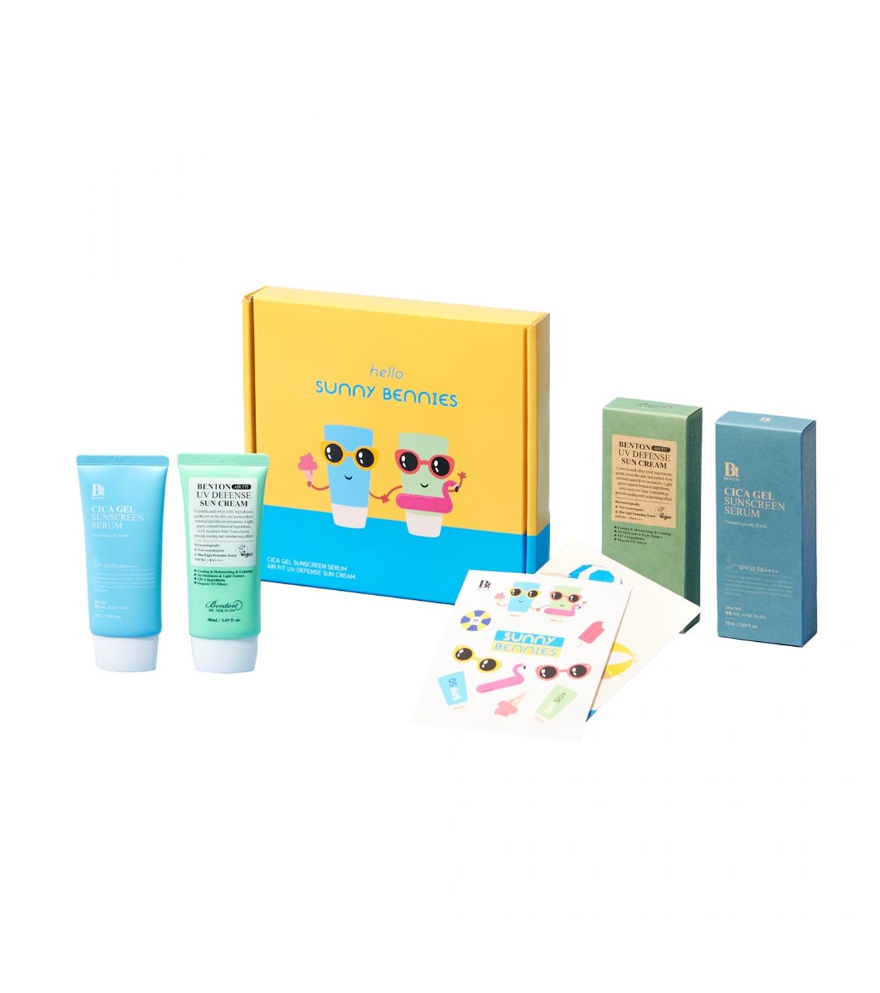 Benton Sun Duo: Ihre meistverkauften Sonnenschutzmittel, ebenso wirksam wie angenehm auf der Haut, in einer hübschen Packung mit Aufklebern, ideal zum Verschenken oder Selbstverschenken.