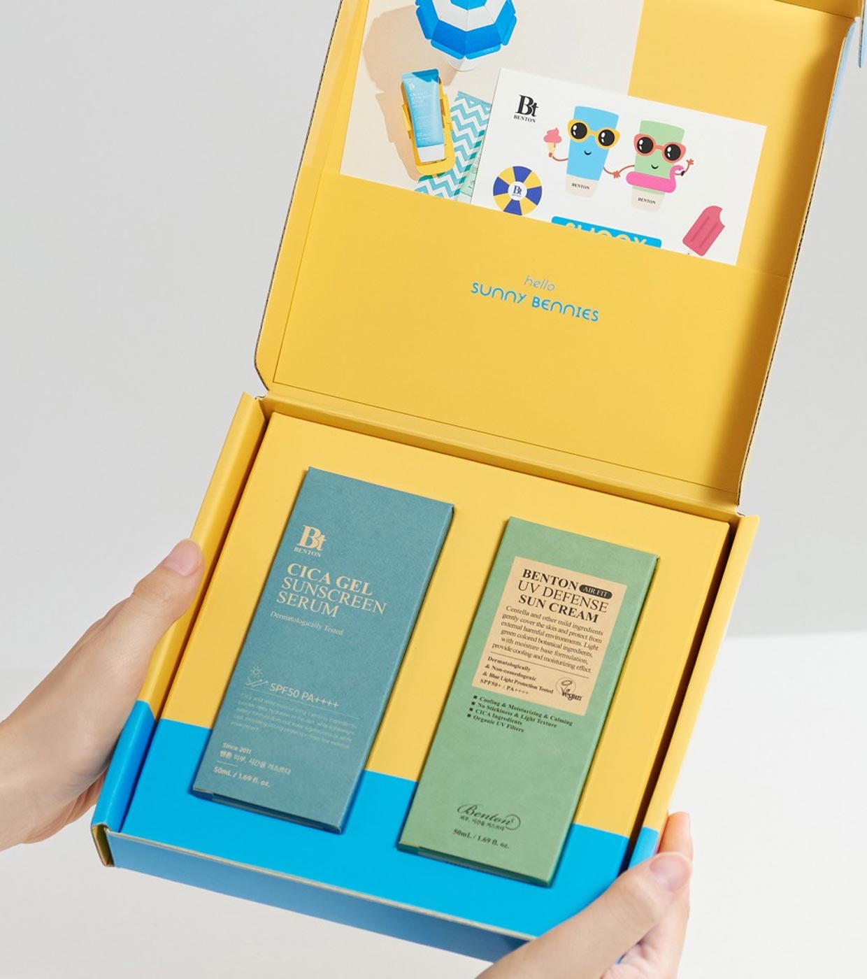 Packung mit zwei Sonnencremes SPF50 von Benton.