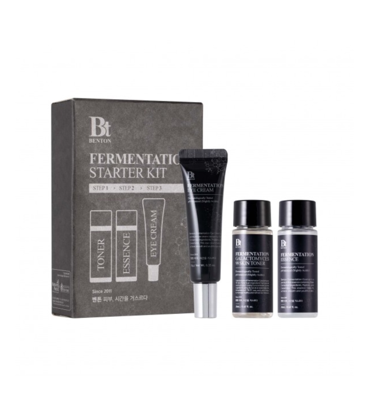Benton Benton 3-Produkt-Set , bestehend aus 3 essentiellen Produkten, formuliert mit fermentiertem Galactomyces-Filtrat, einem wichtigen Inhaltsstoff zur Pflege, Beruhigung und Verbesserung der Hautelastizität.