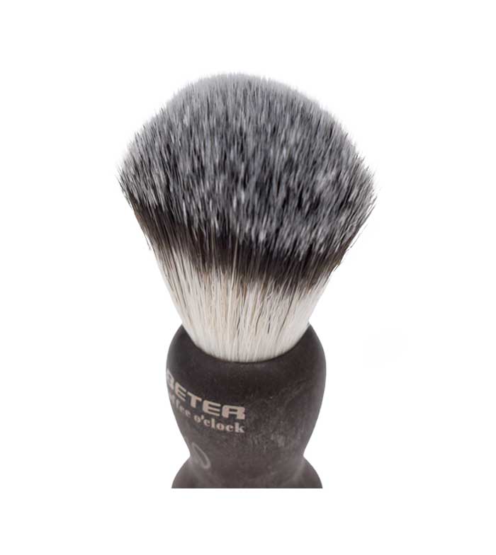 Sein Griff besteht aus recyceltem gemahlenem Kaffee und Kunststoff und seine synthetischen Borsten sind für Veganer geeignet.